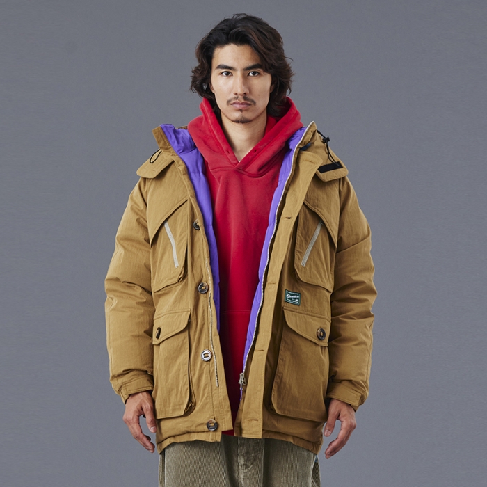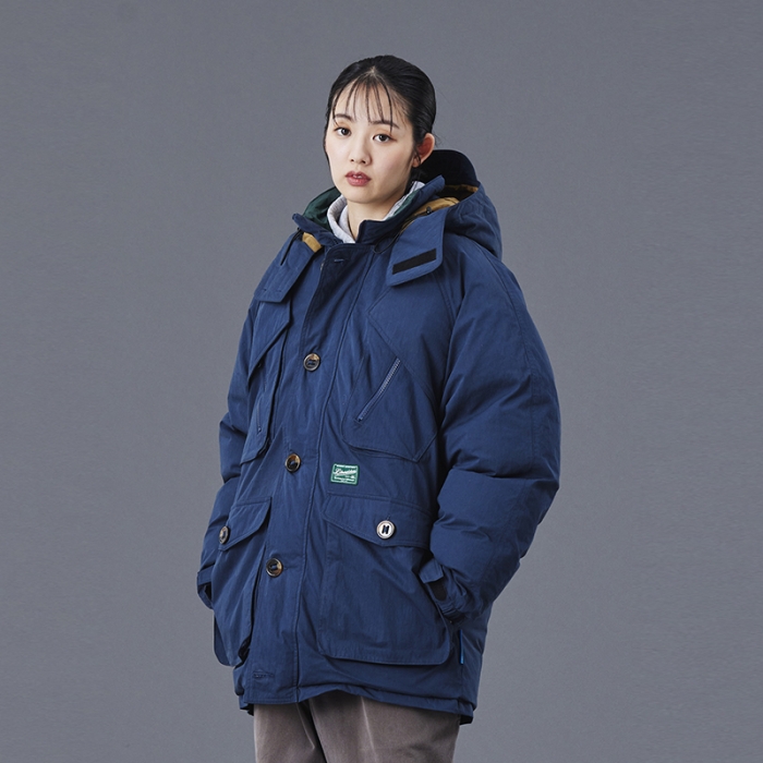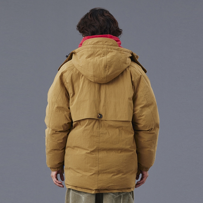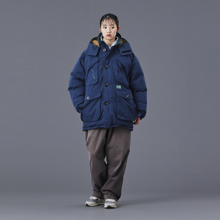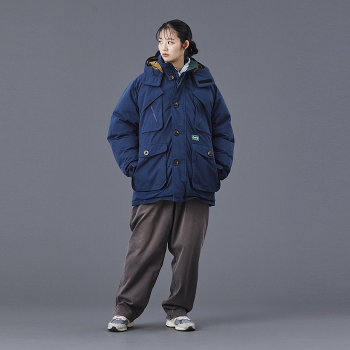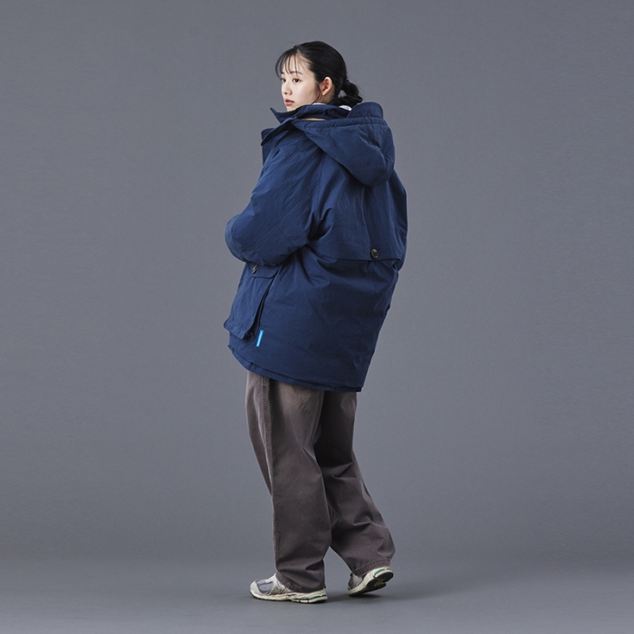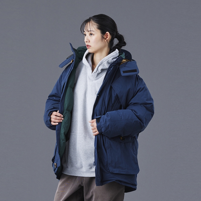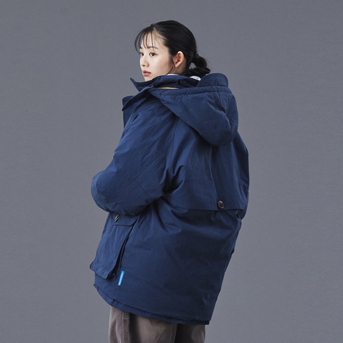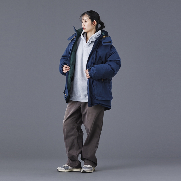 コットンナイロン生地を使用し、フードインナー、ライニングにも配色を施しレトロ感のある商品です。