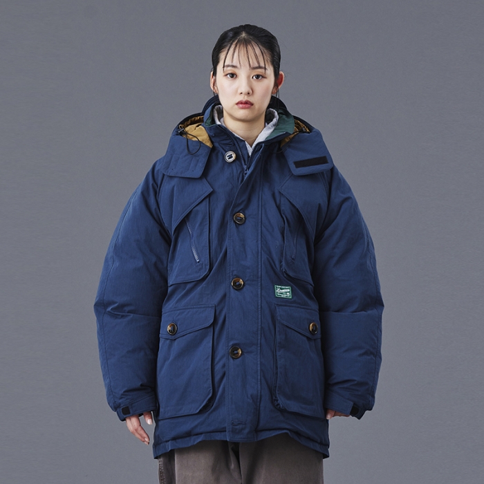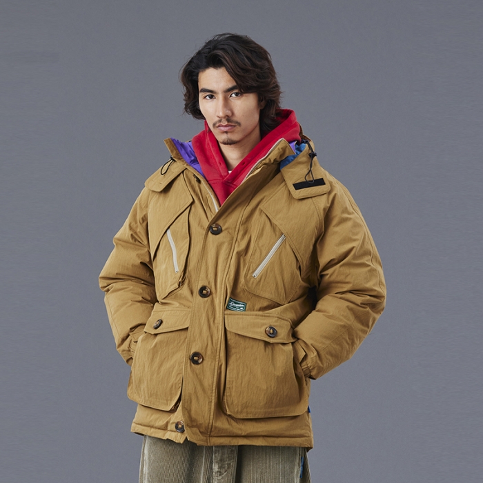 古着のダウンジャケットからインスピレーションを得た新型のダウンジャケット。