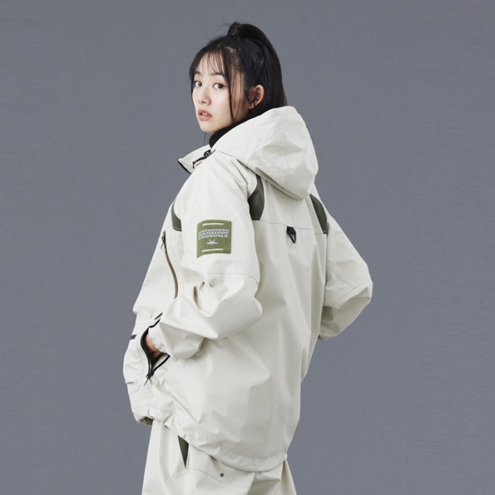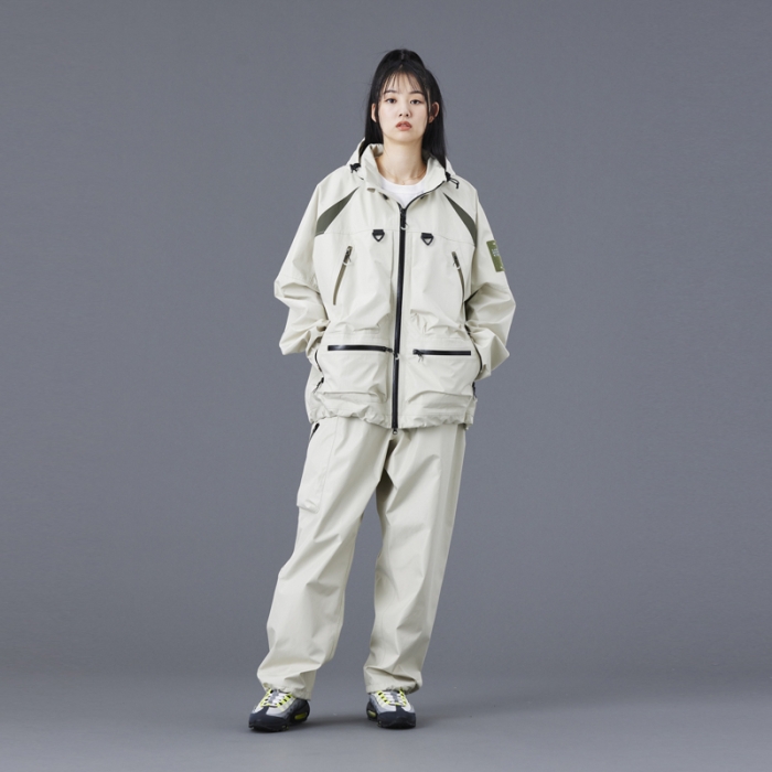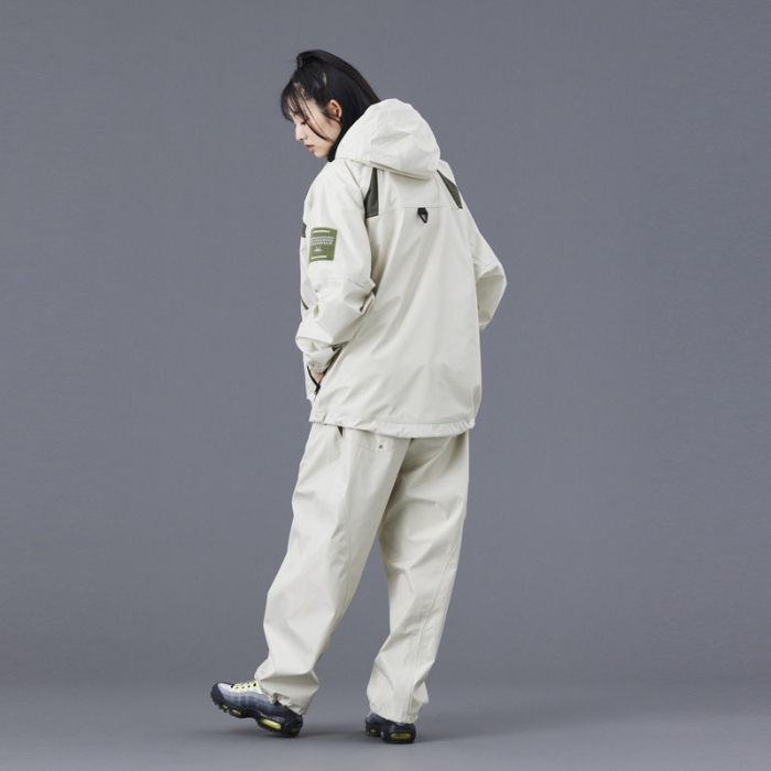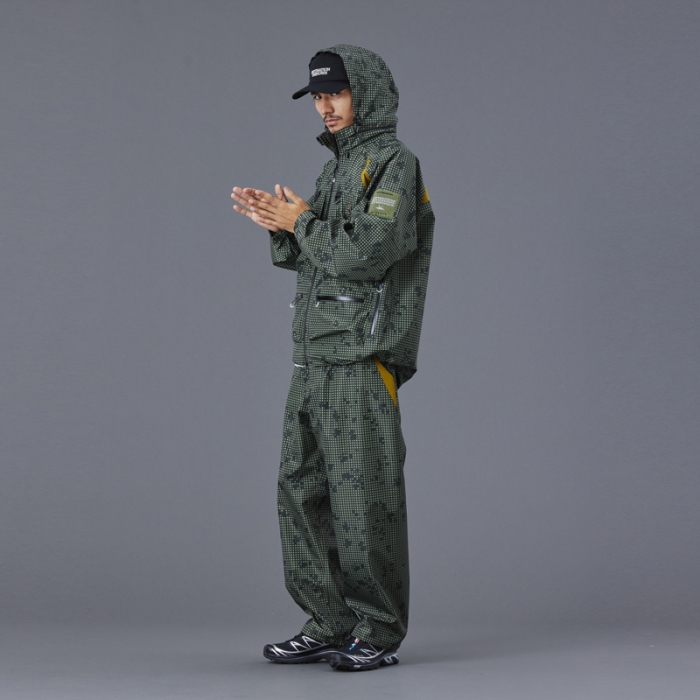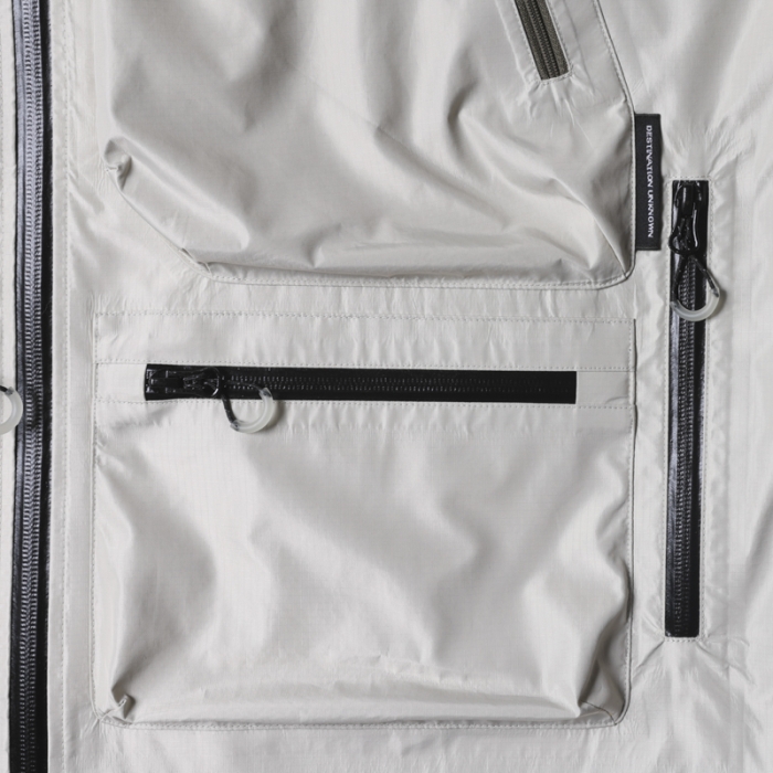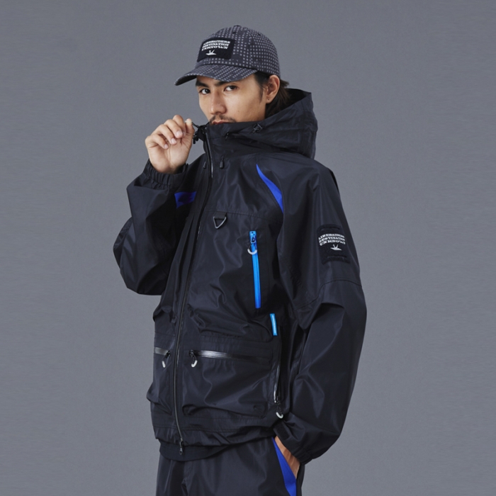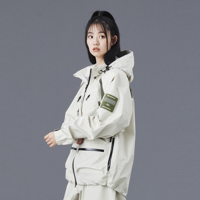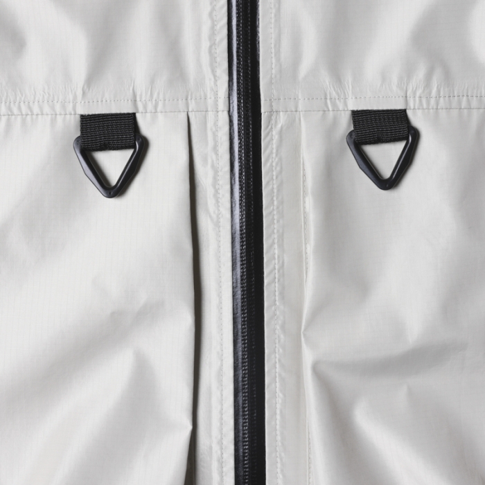 リップストップ三層生地を使用した防水3レイヤージャケット。