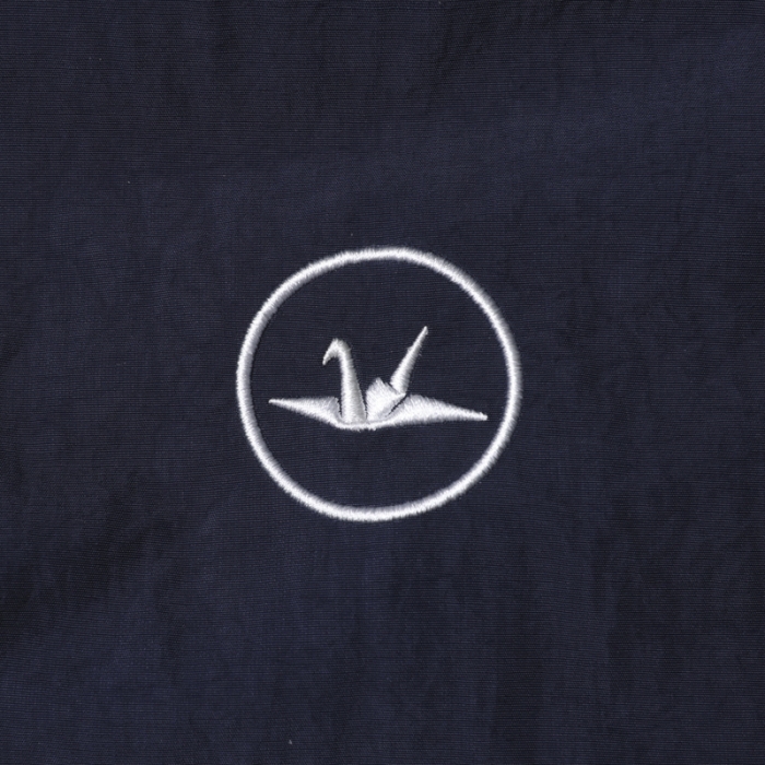 表面は両胸、背中に刺繍が入り、裏面は胸にシリコンワッペン、後裾にデザインラベルがつきます。
