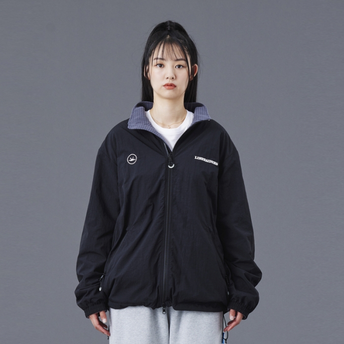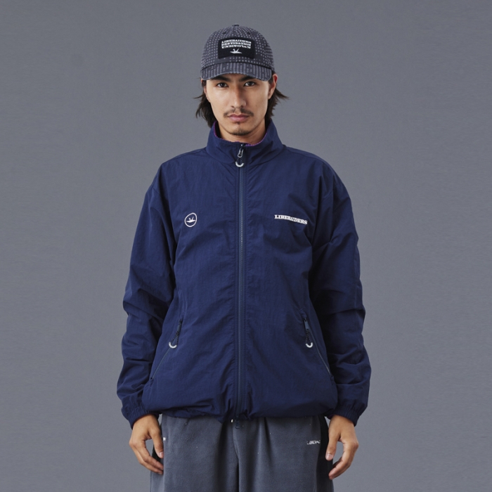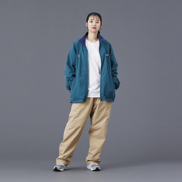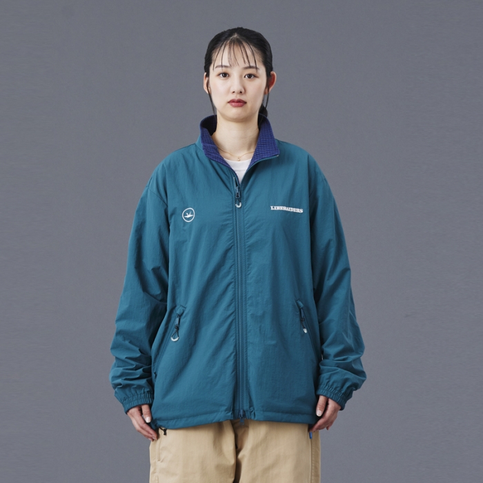 表地に塩縮ナイロンを使用したリバーシブルのウインドブレイカー。