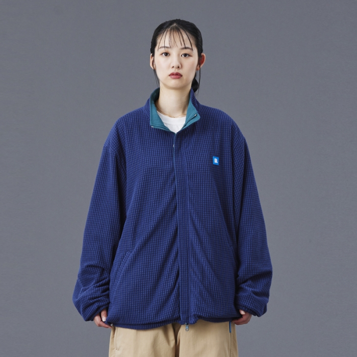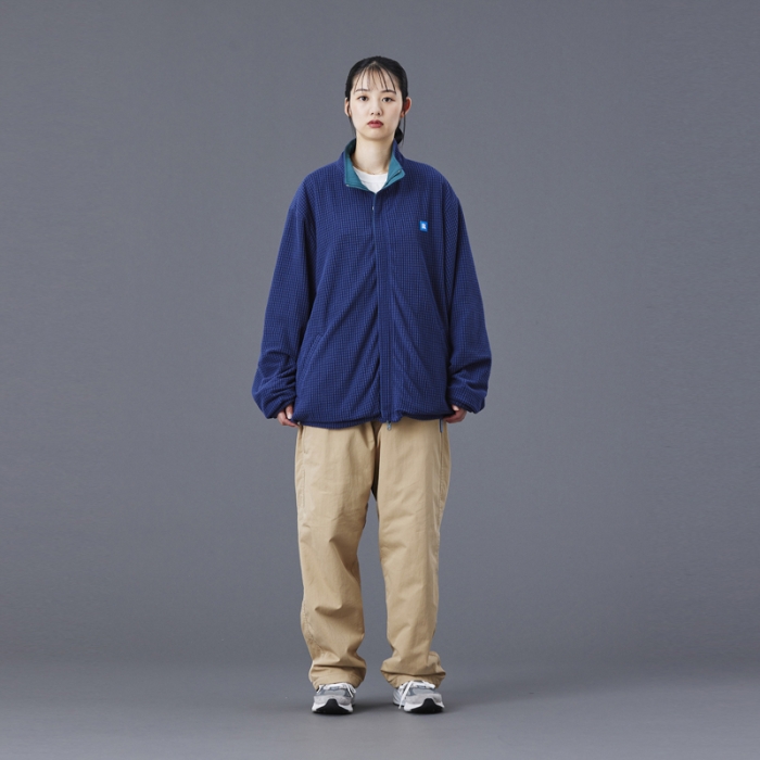 裏面にはグリッドフリースを使用し、保温性もさることながら異なるスタイルの着回しが可能です。
