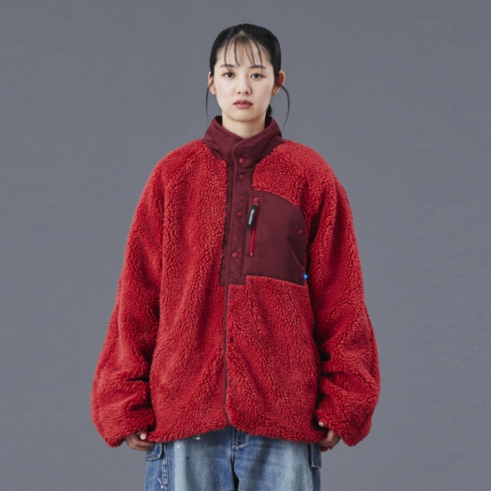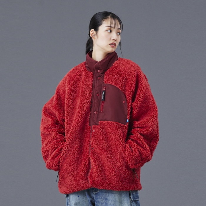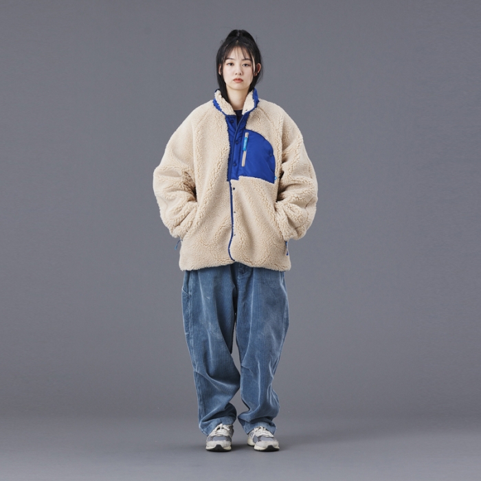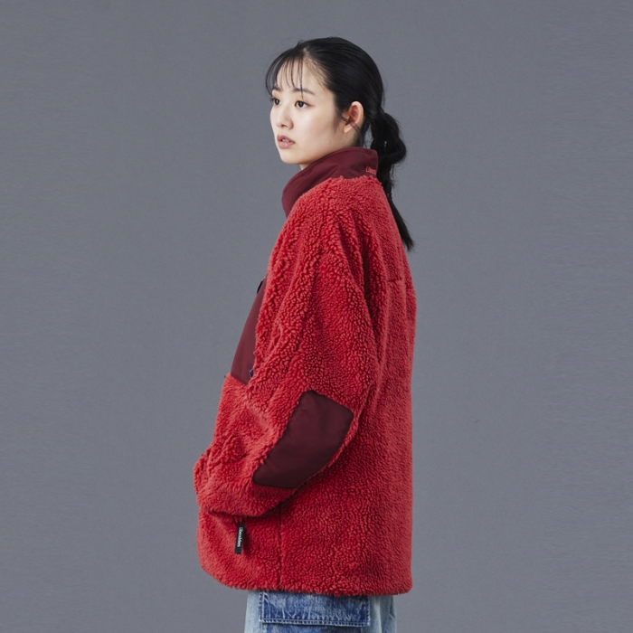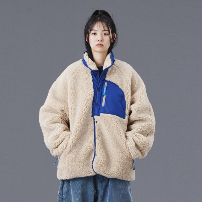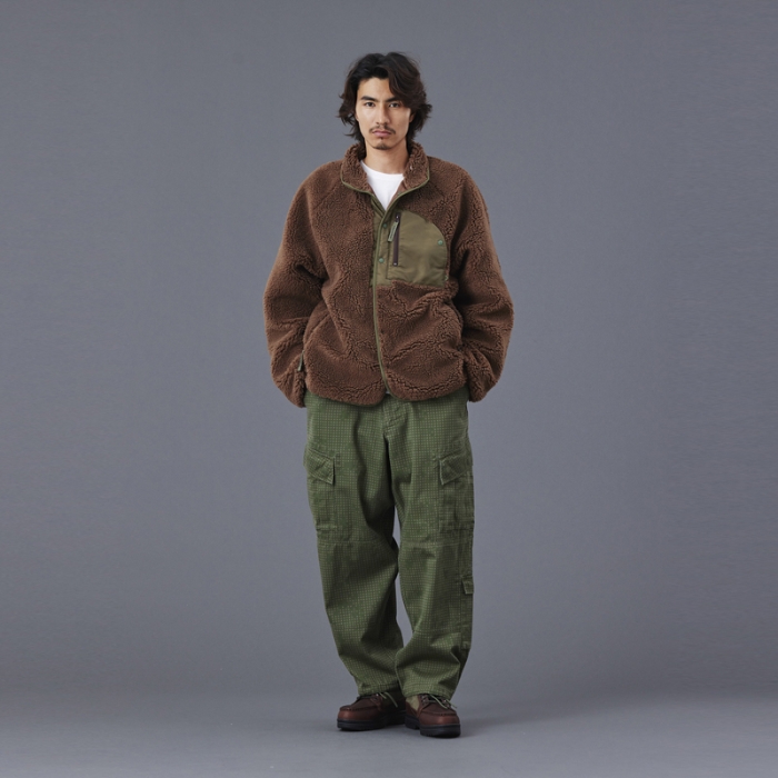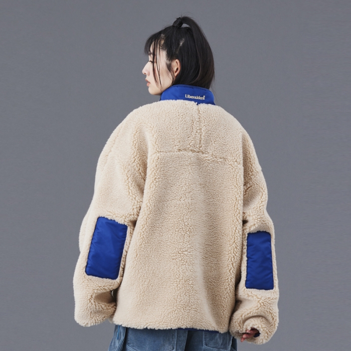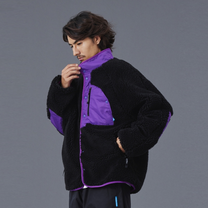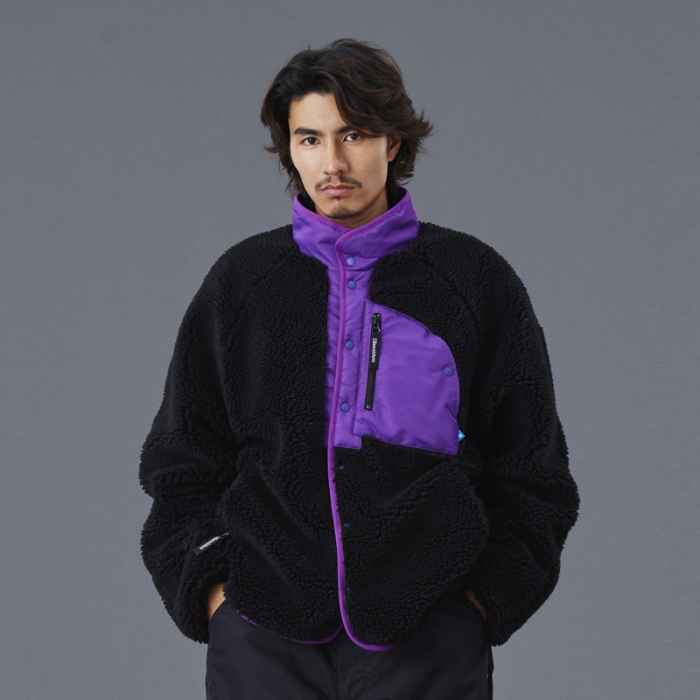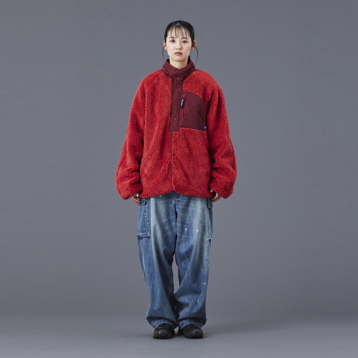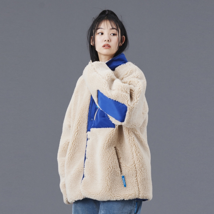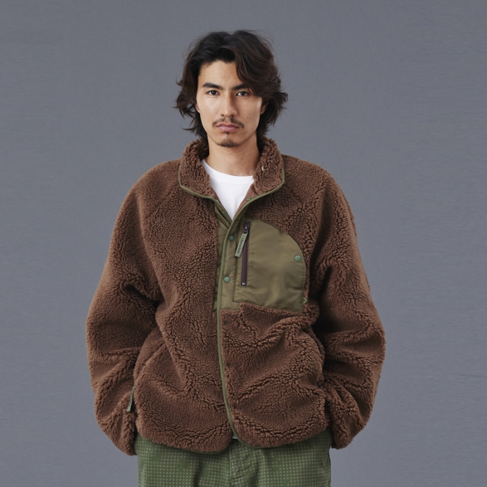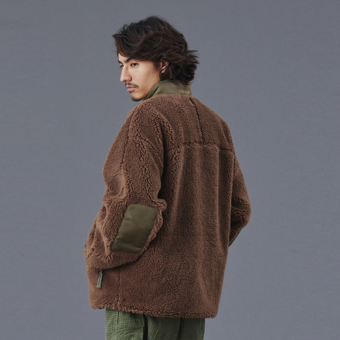 毛足の長いハイロフトな特注のボアフリース生地を使用したレトロタイプのジャケット。