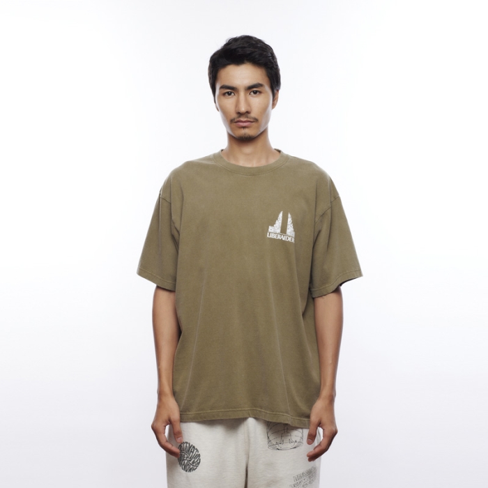 Tシャツには全体を起毛させ、色を退色させるパウダーフロスト加工を施しており、肌触りが良くヴィンテージライクな仕上がりになっています。