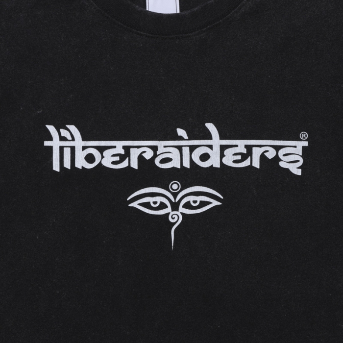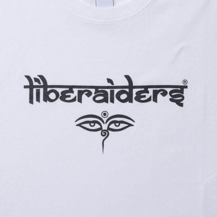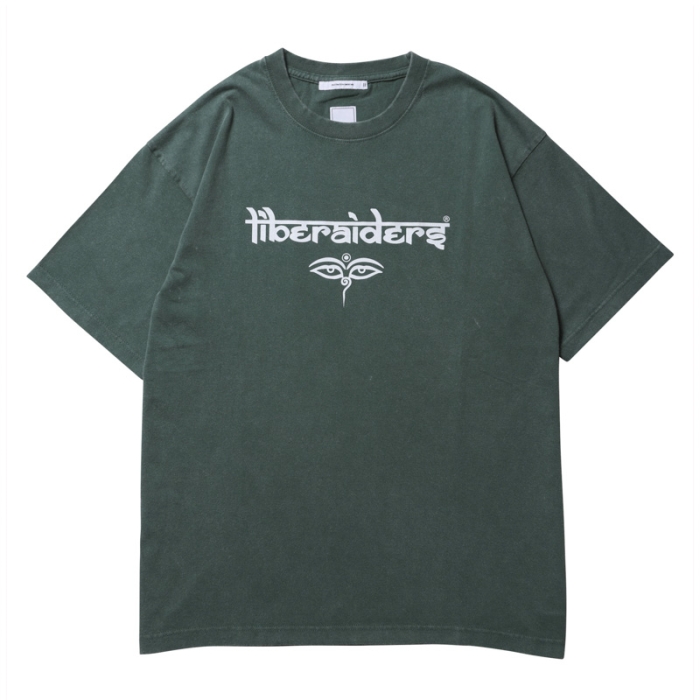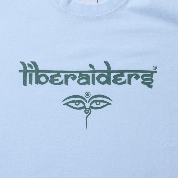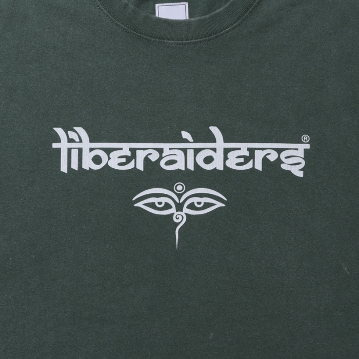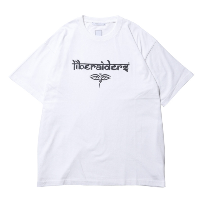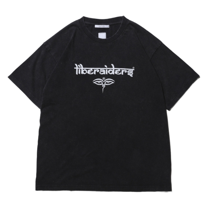サンスクリットとアルファベットを融合させた オリジナルロゴとブッダの目が印象的なグラフィックTEE。