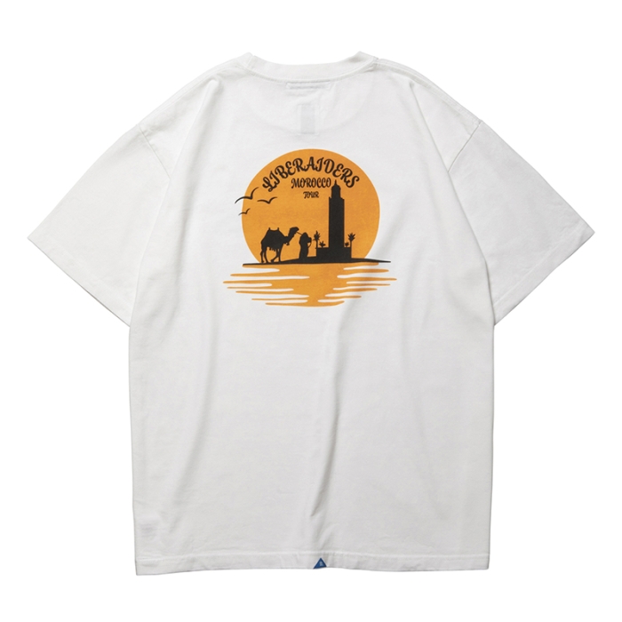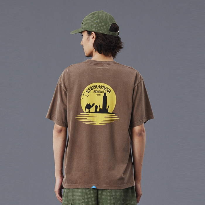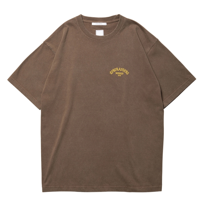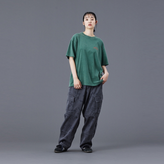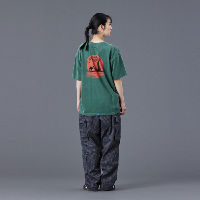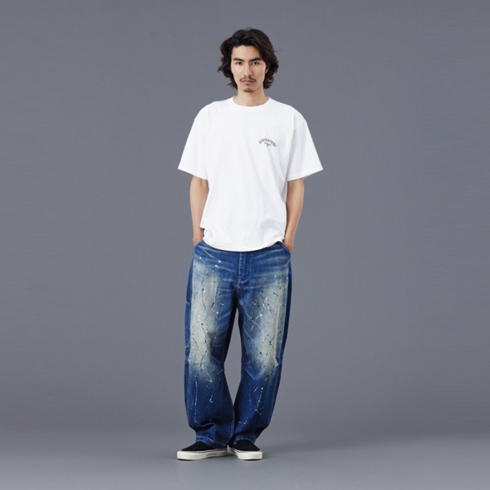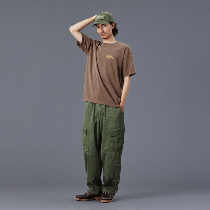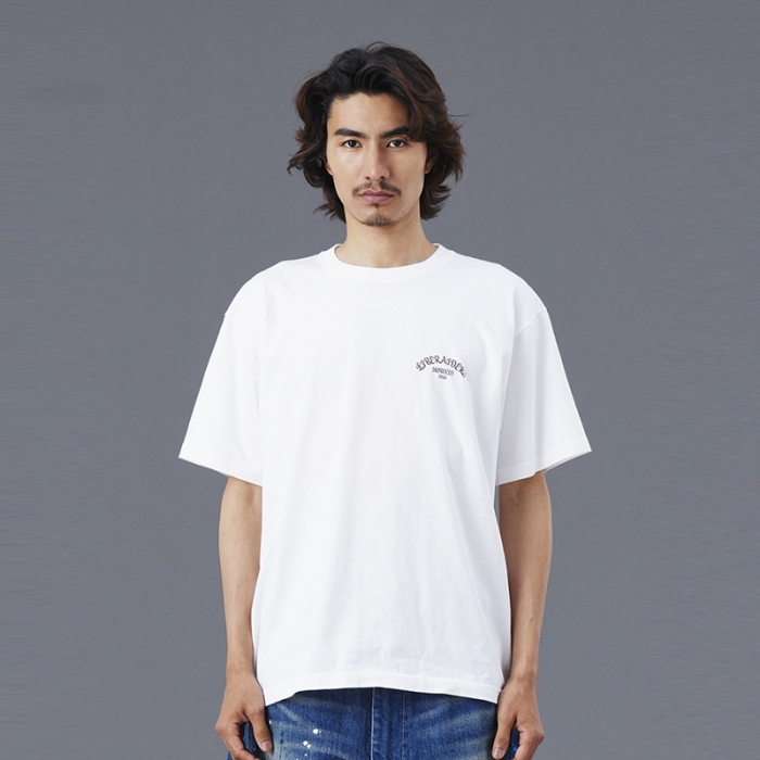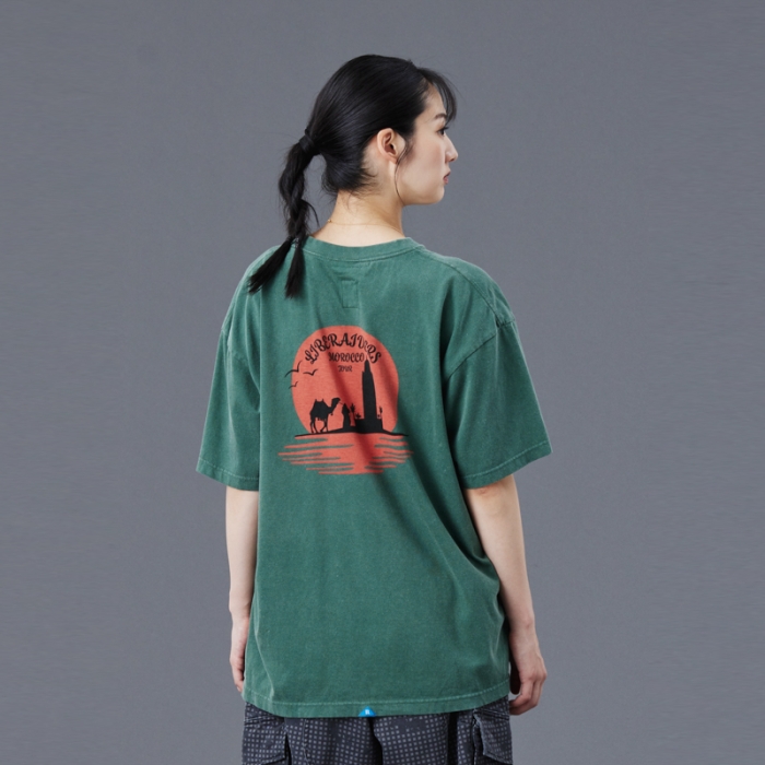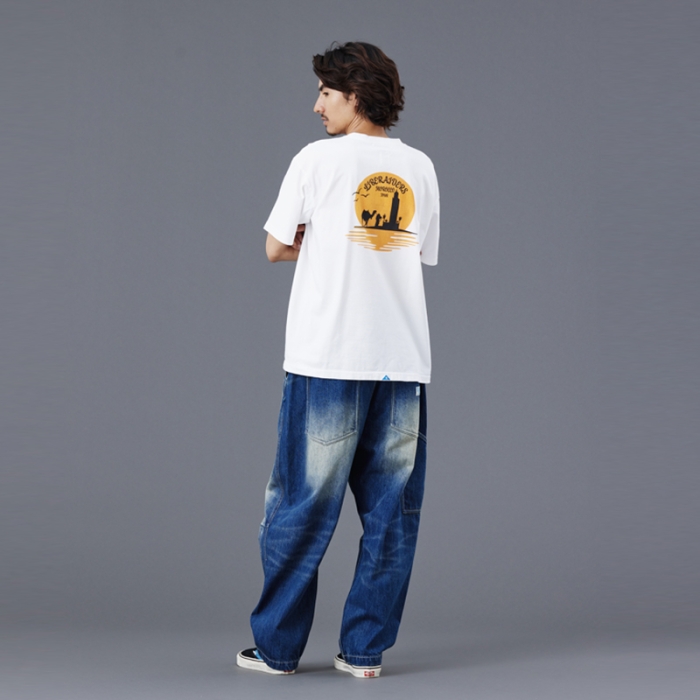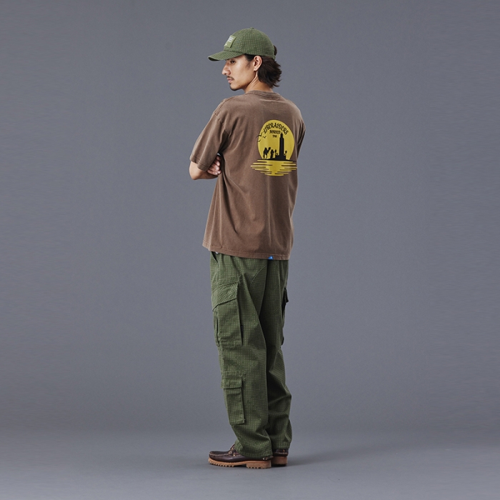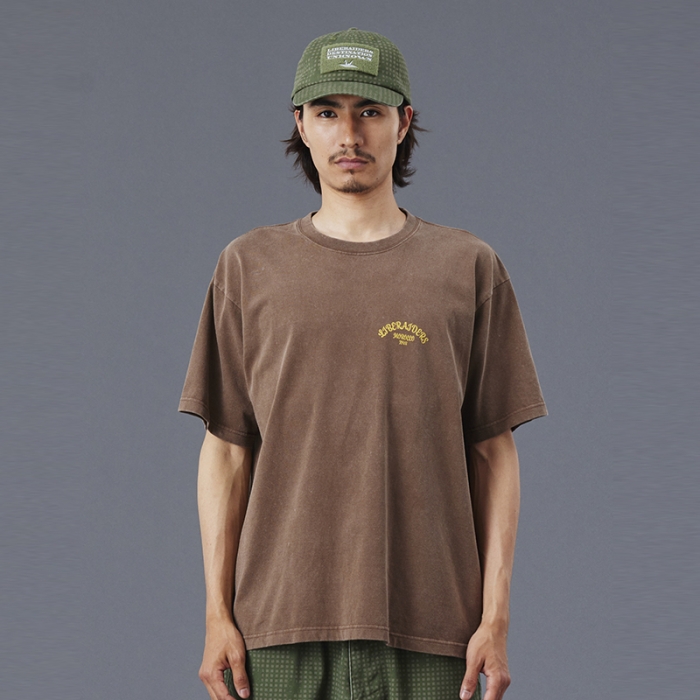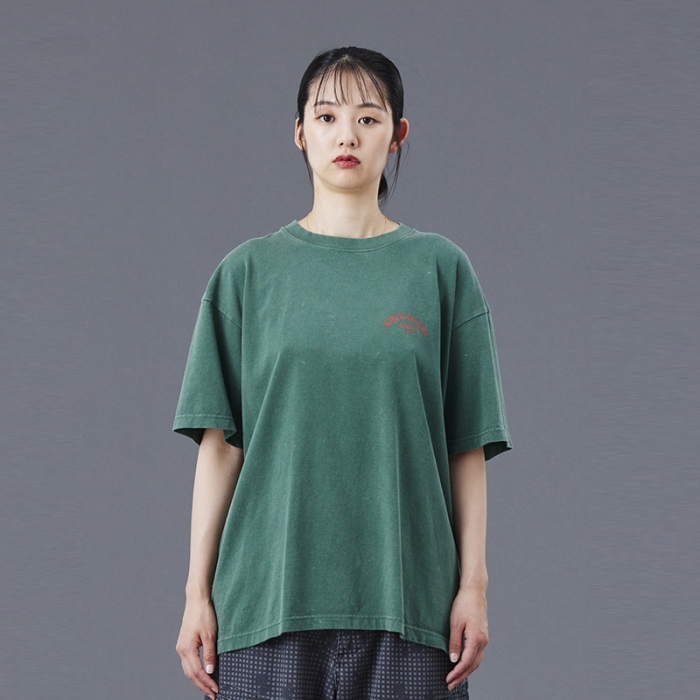 Tシャツには全体を起毛させ、色を退色させるパウダーフロスト加工を施しており、肌触りが良くヴィンテージライクな仕上がりになっています。