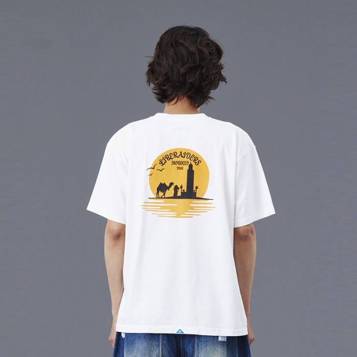 背面にはカサブランカの夕日を着抜プリントで表現しました。