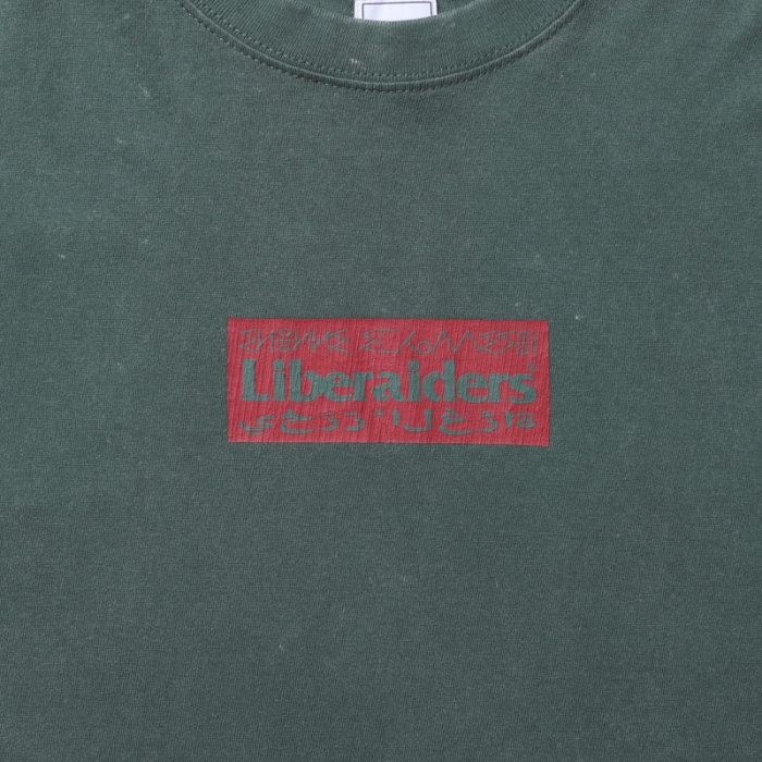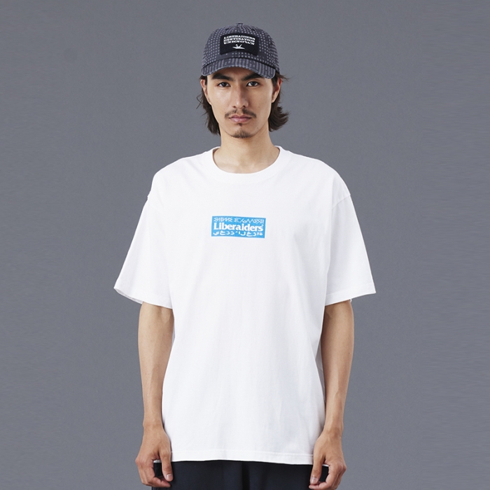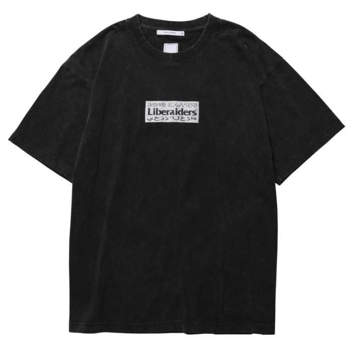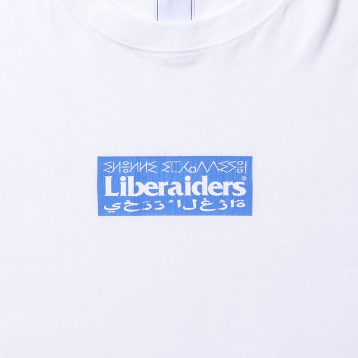 Liberaidersのロゴとモロッコ少数民族のティファナグ語とアラビア語で【LIBERATE】=解放 【RAIDERS】=侵略とプリントされています。