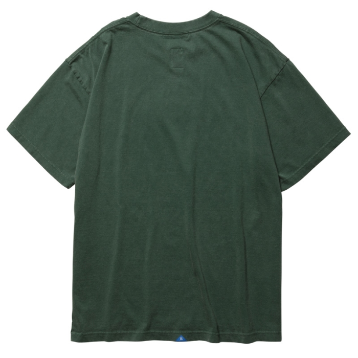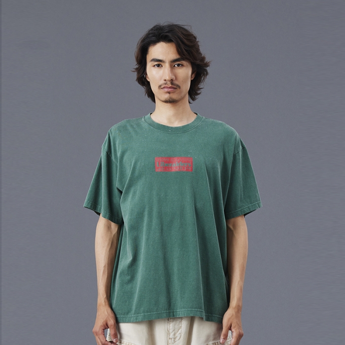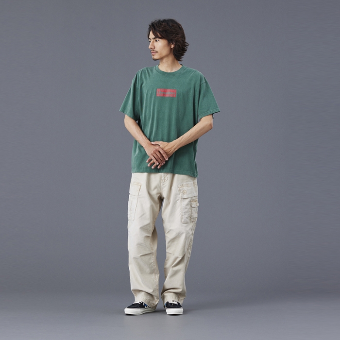 Tシャツには全体を起毛させ、色を退色させるパウダーフロスト加工を施しており、肌触りが良くヴィンテージライクな仕上がりになっています。