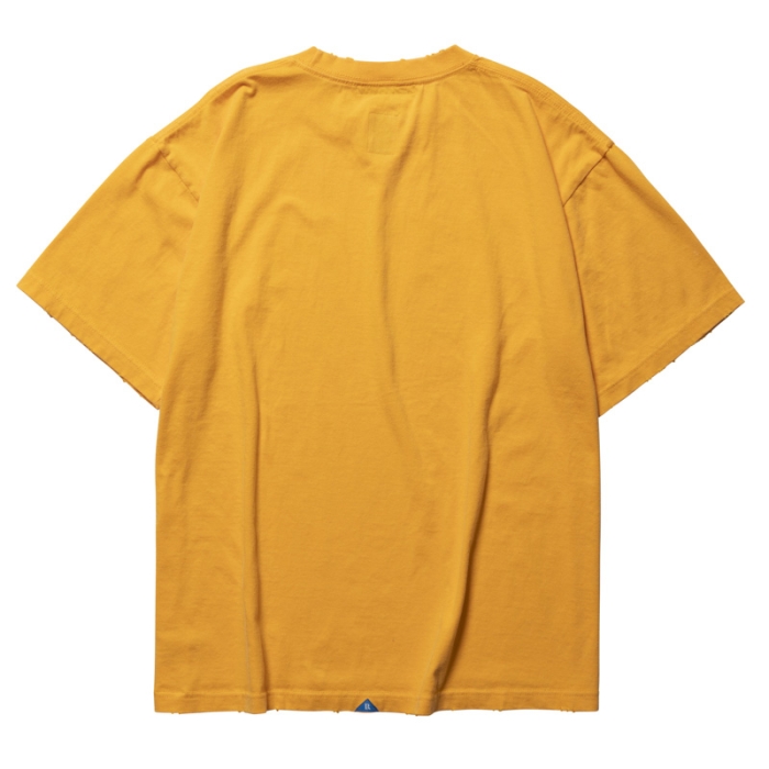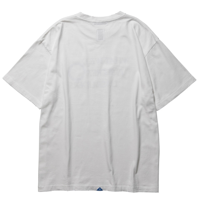 Tシャツには全体を起毛させ、色を退色させるパウダーフロスト加工を施しており、肌触りが良くヴィンテージライクな仕上がりになっています。