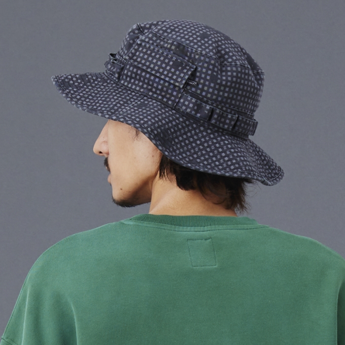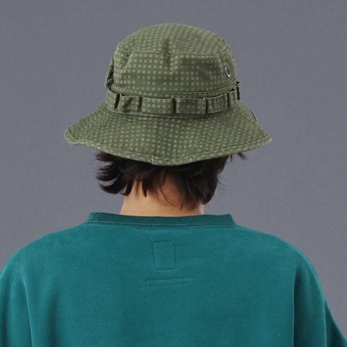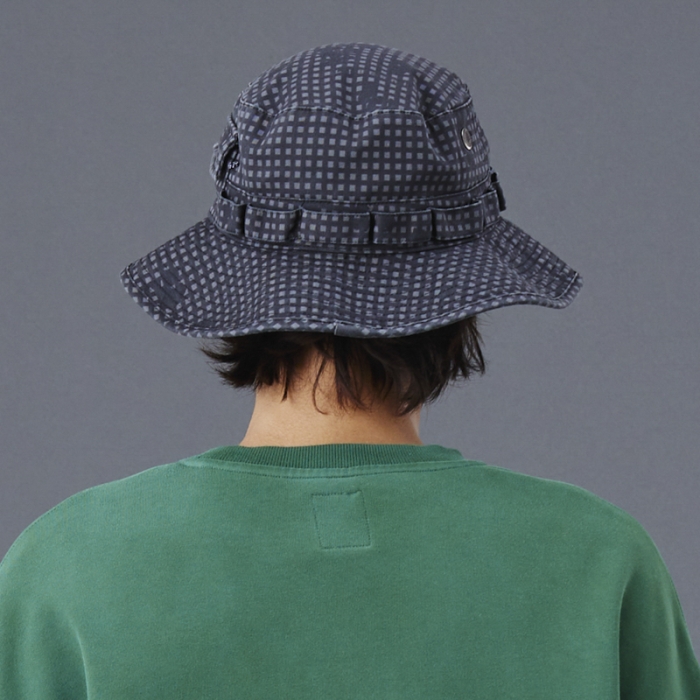 コットンツイルにオリジナルのナイトカモをプリントしたジャングルハット。