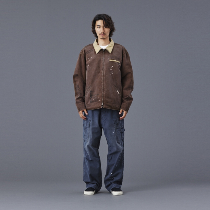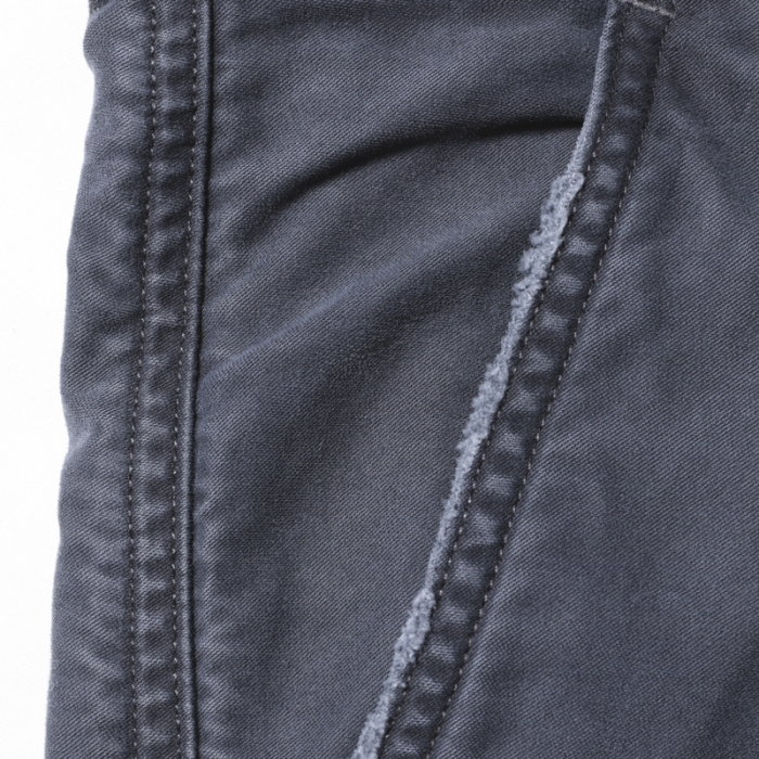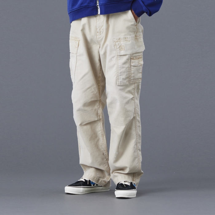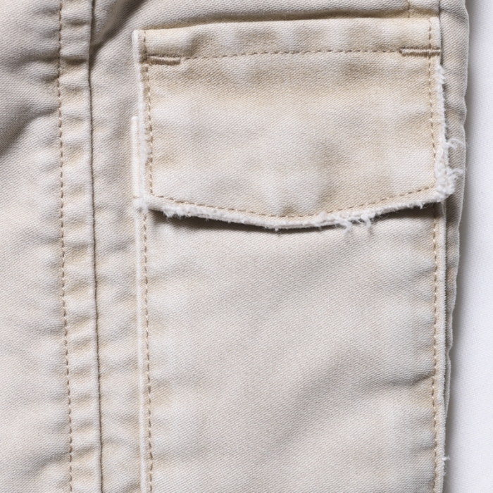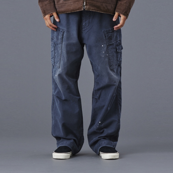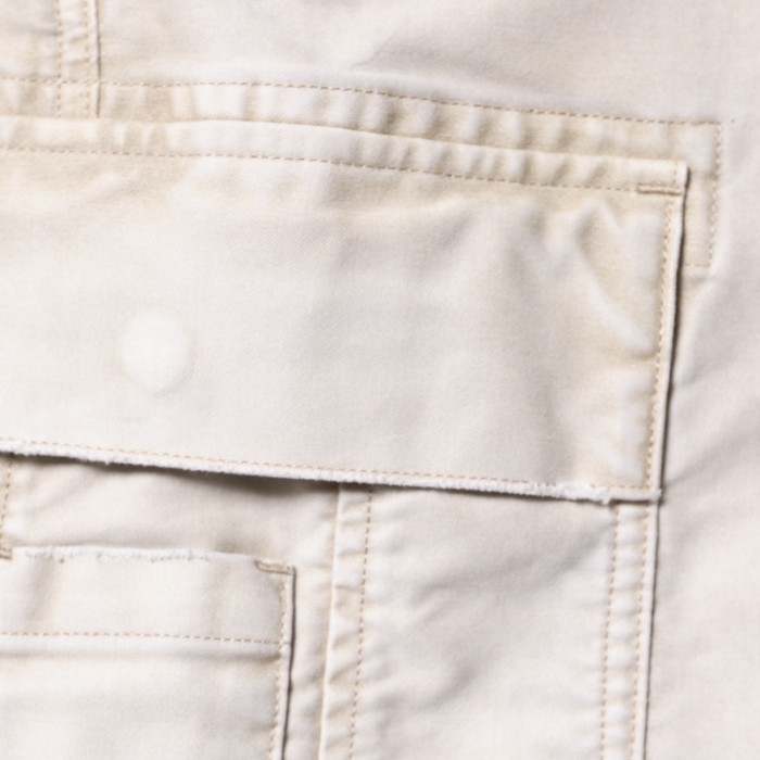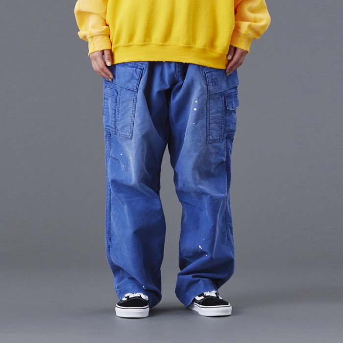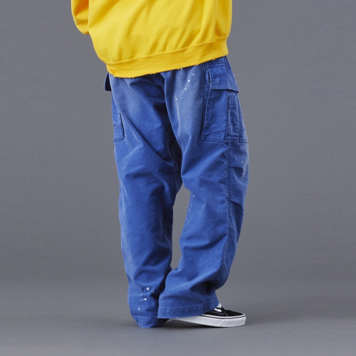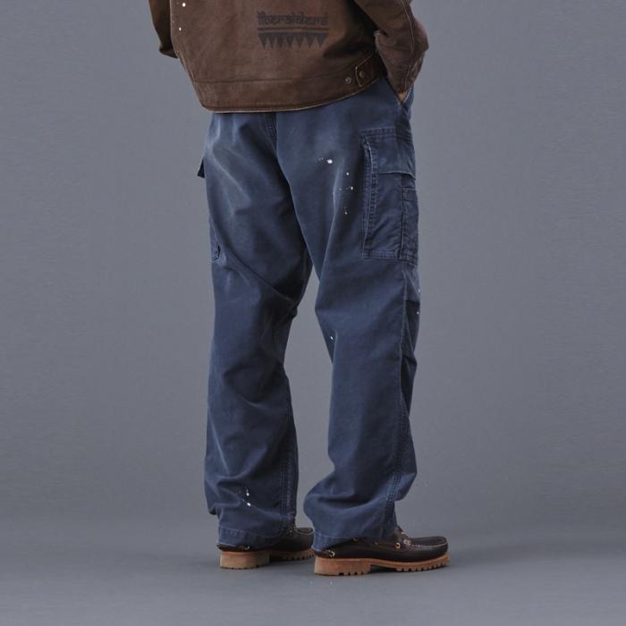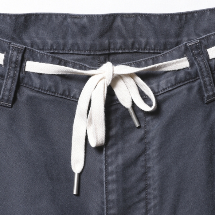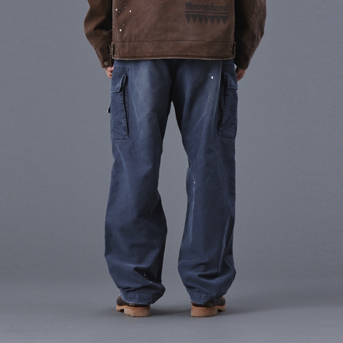 もともと軍物で多用されるモールスキンパンツを加工により、どこか懐かしく、ストリート感を感じさせる一本に仕上げています。