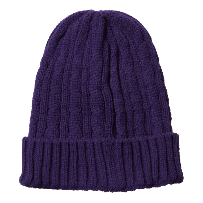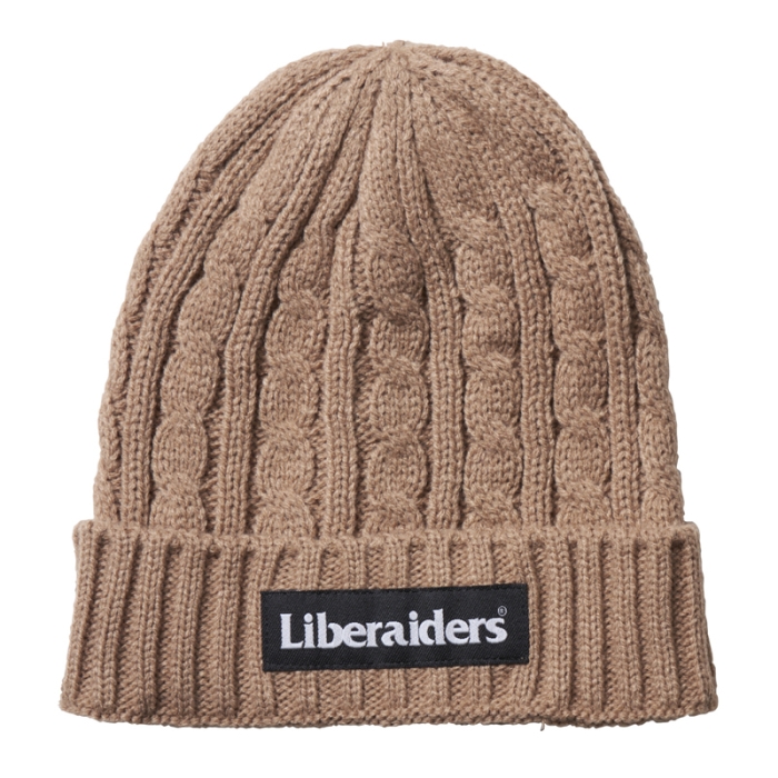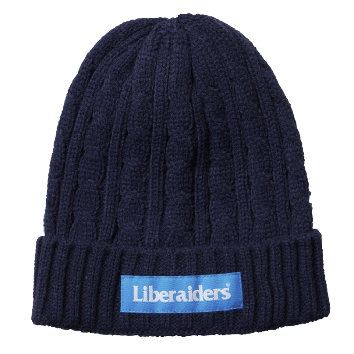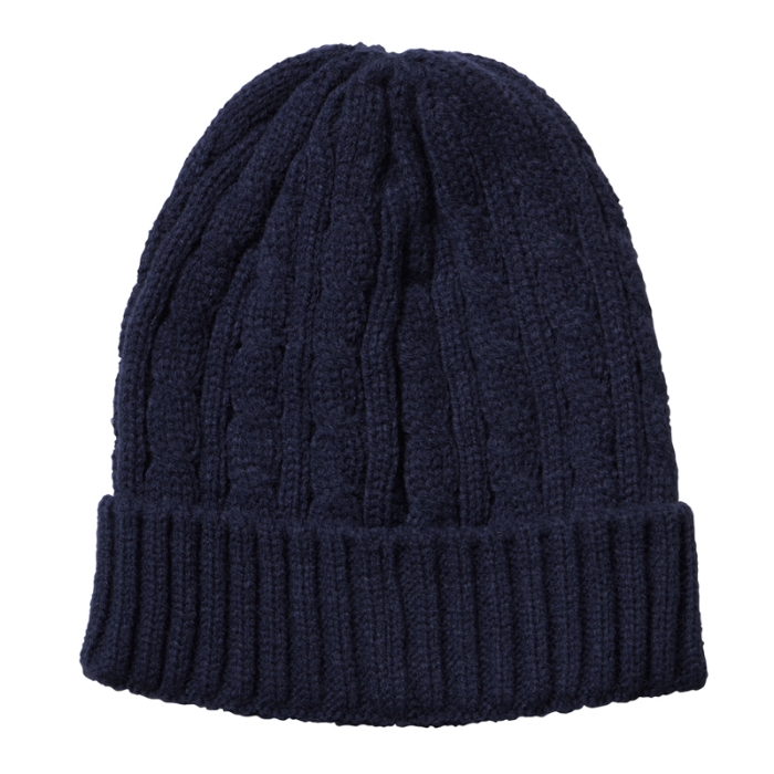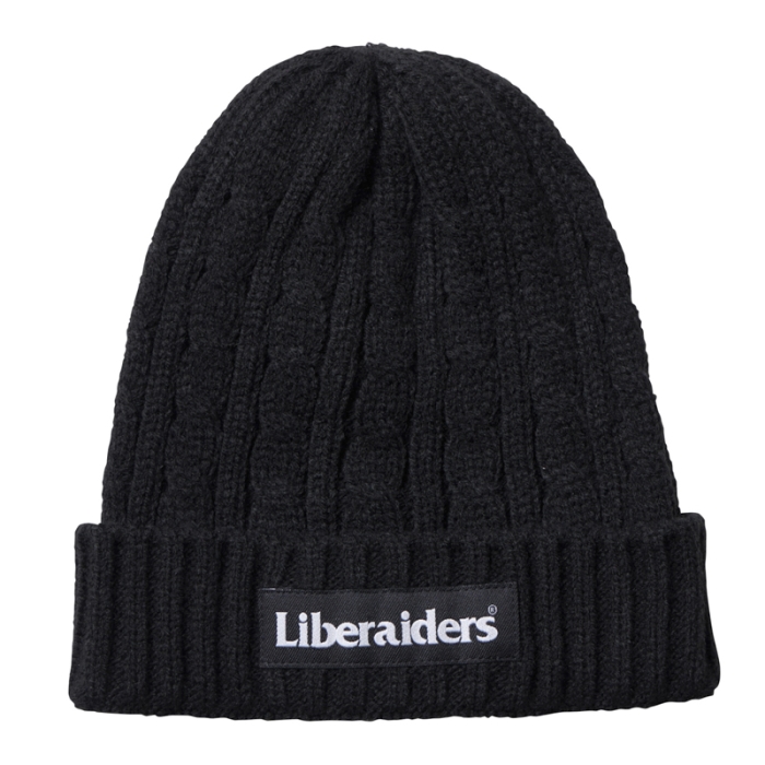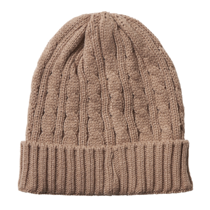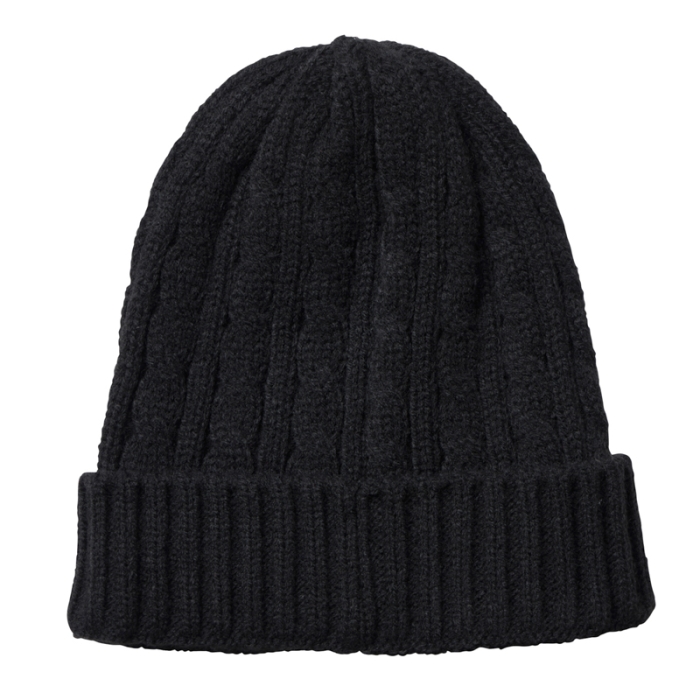 OGロゴのラベルを施したシンプルなケーブル編みのニットキャップ。