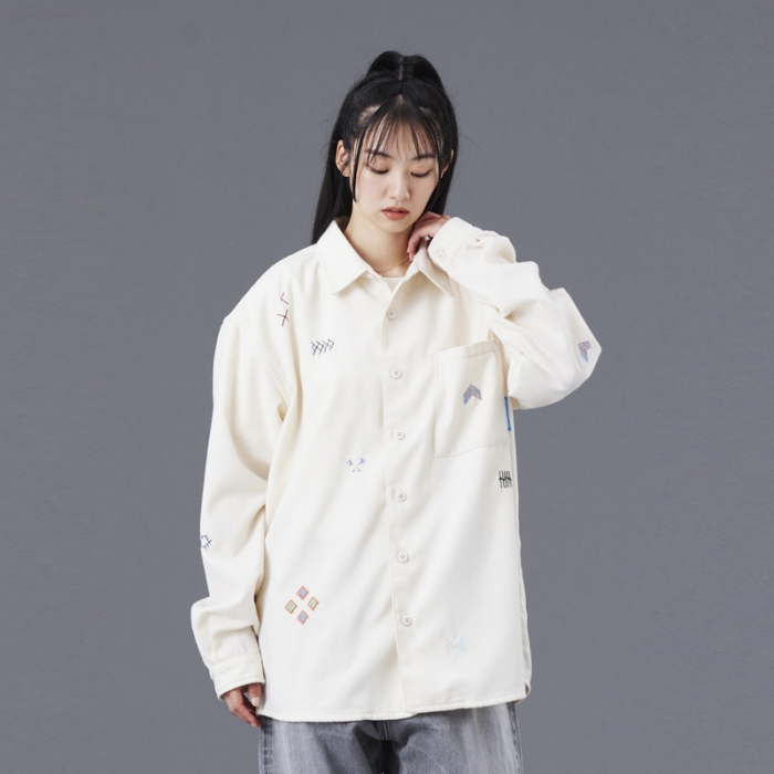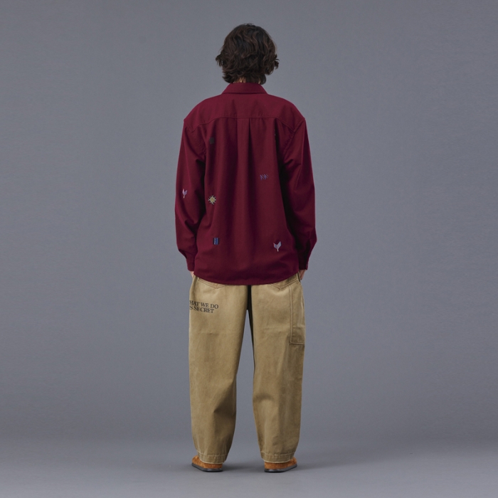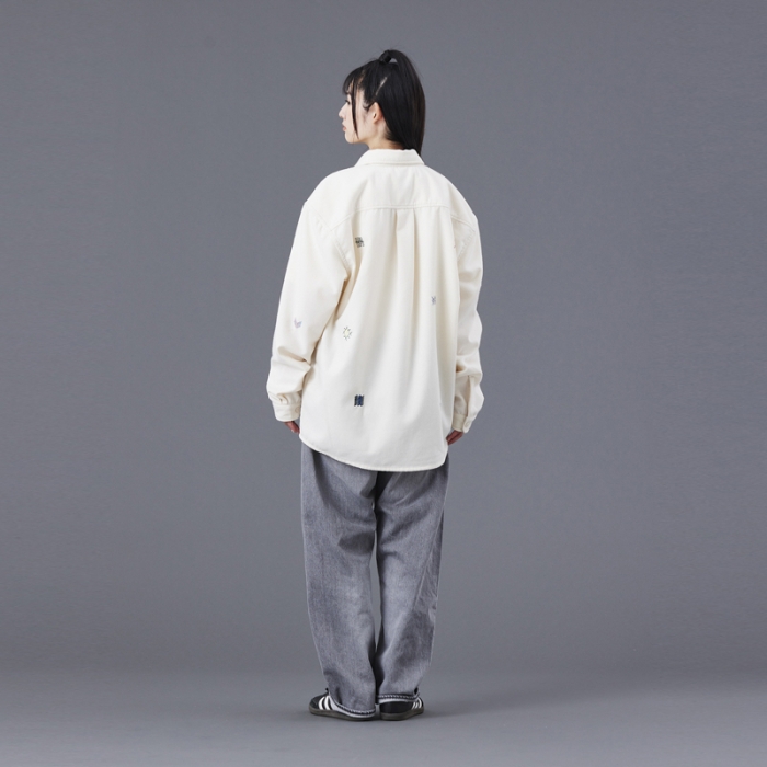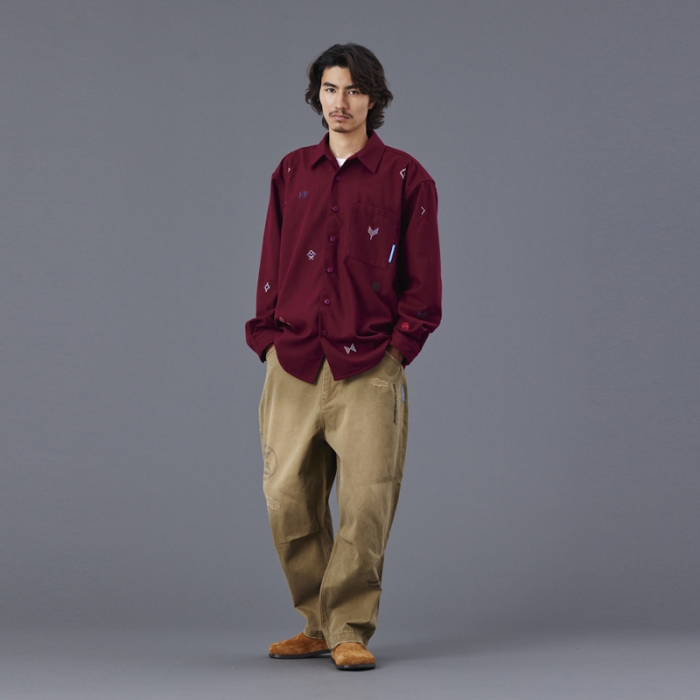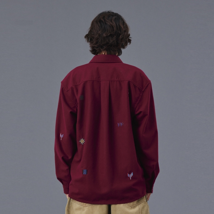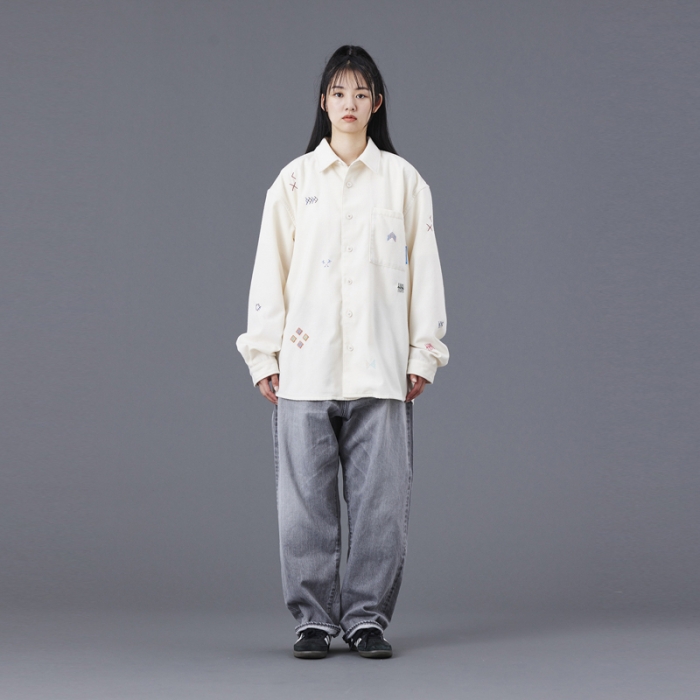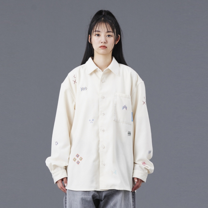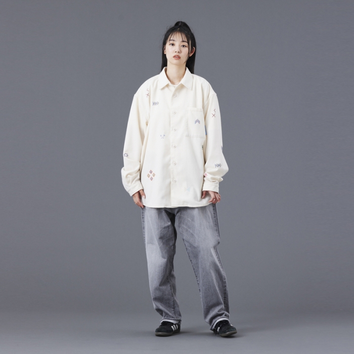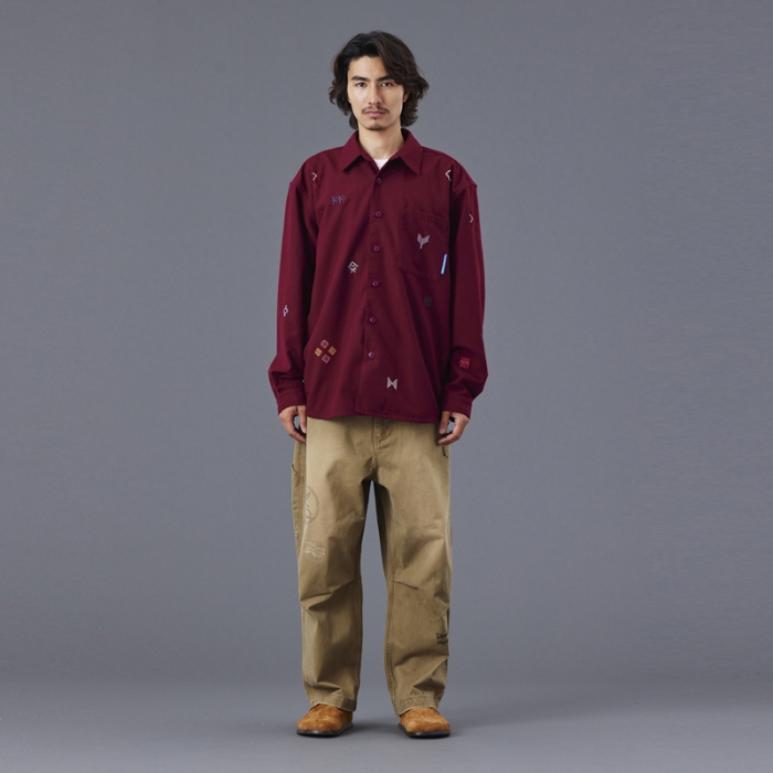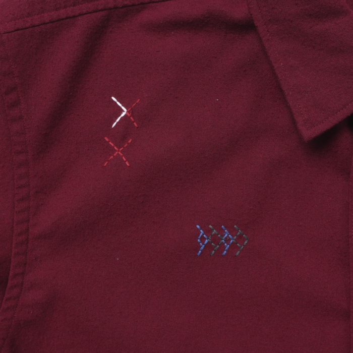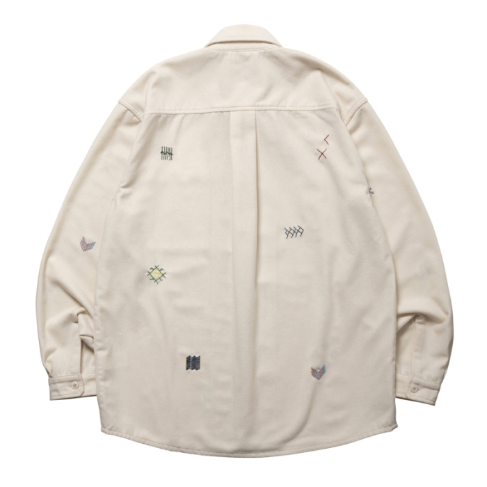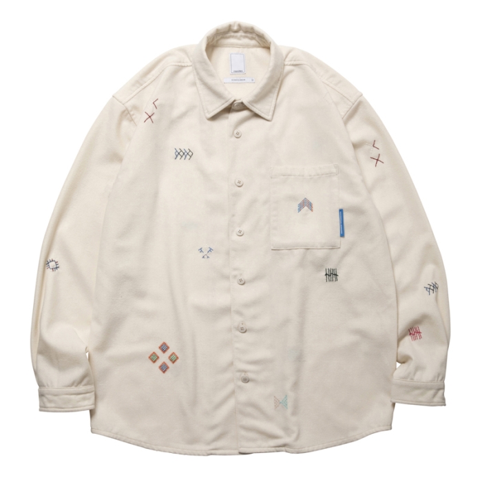 地厚なフランネル生地にモロッコの少数民族が使用しているティファナグ文字(象形文字)がハンド風刺繍で入ったシャツ。
