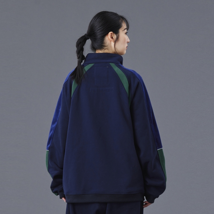 裏がマイクロボアのようになっている特殊な裏起毛を用いたトラックジャケット