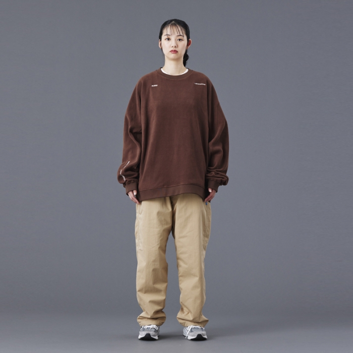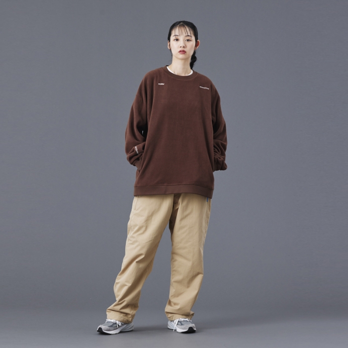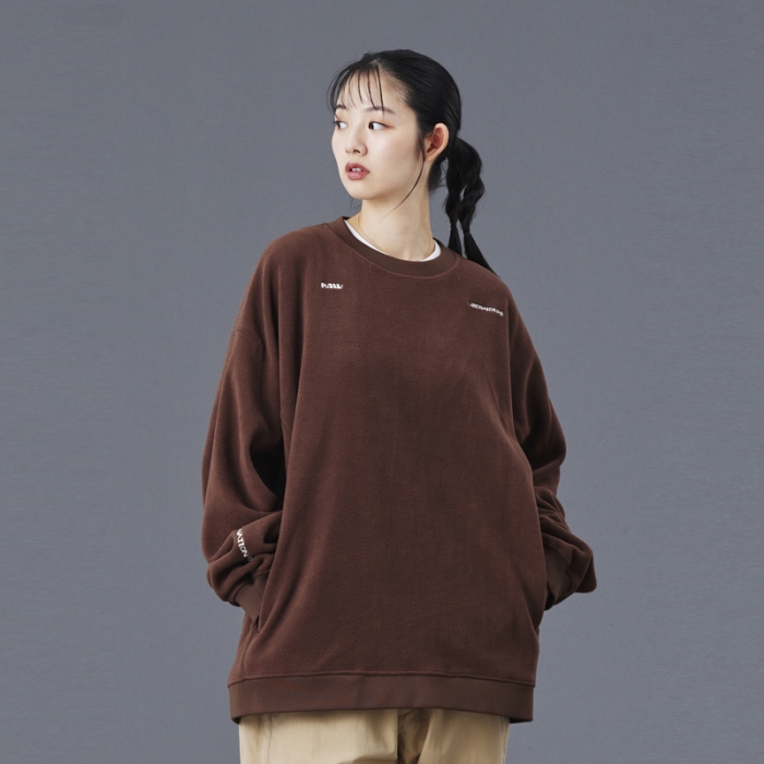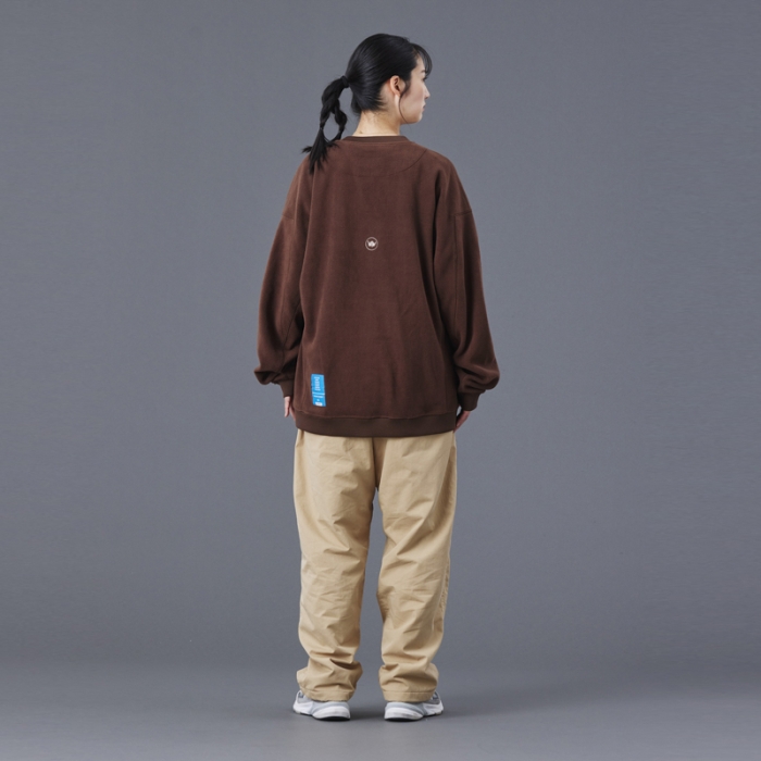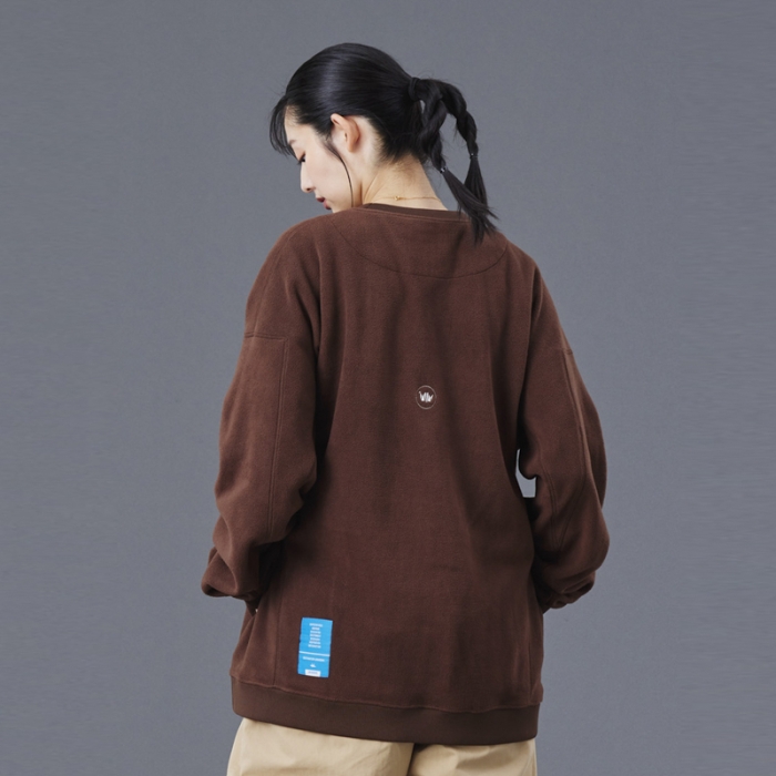 中肉で軽く保温性のあるフリースを用いたクルーネック