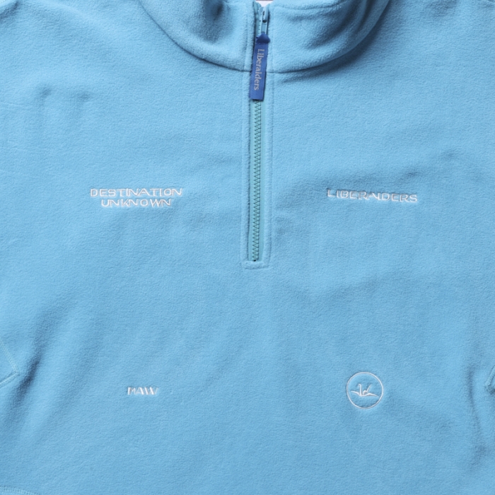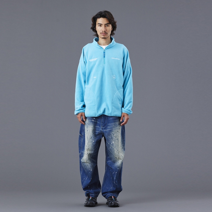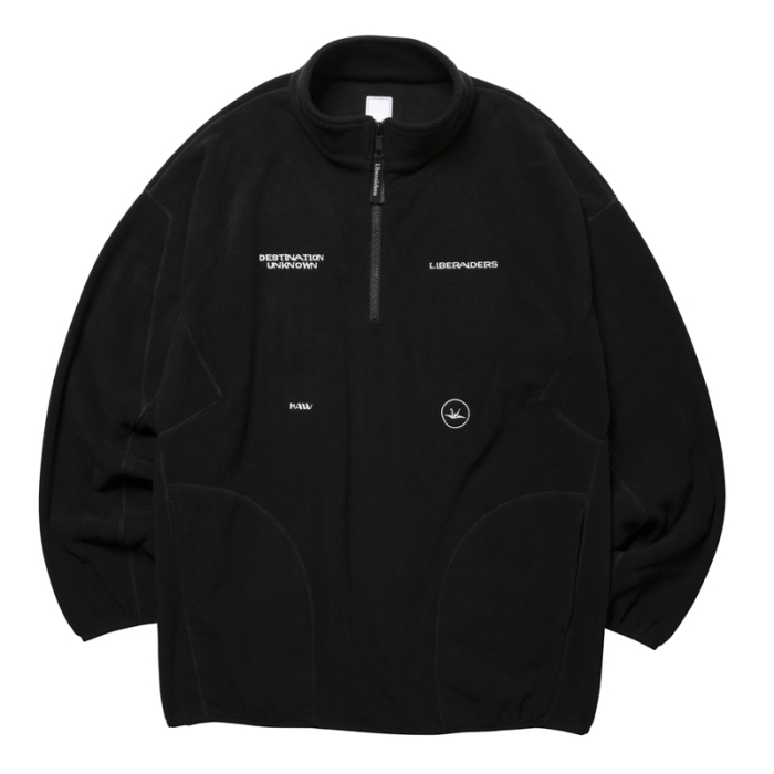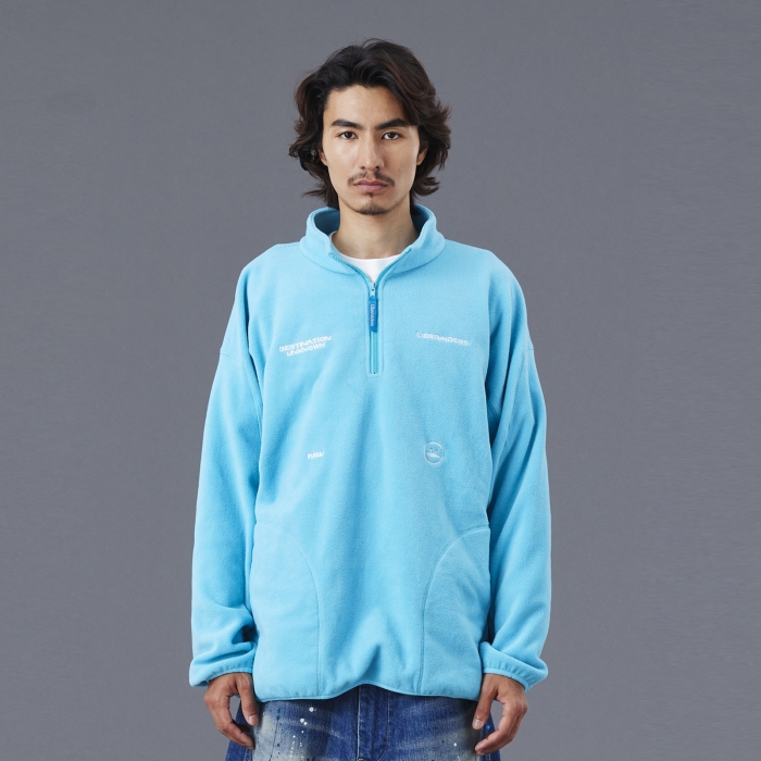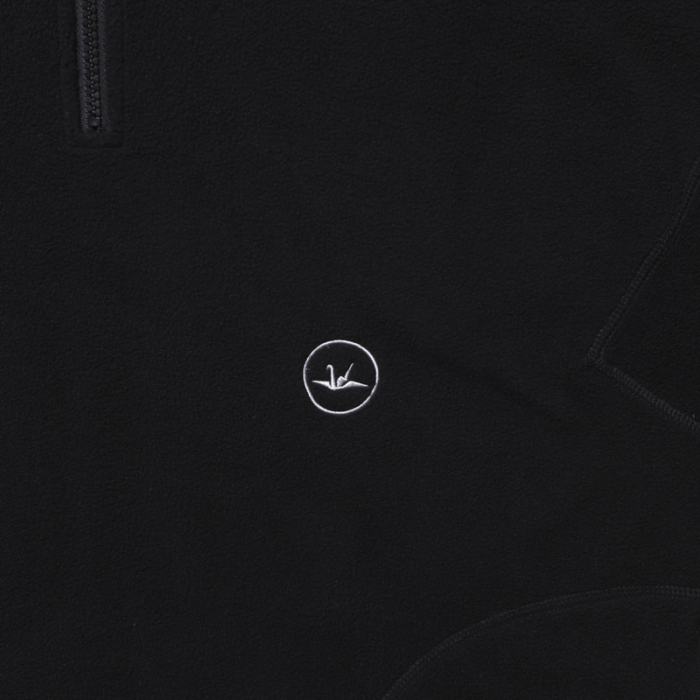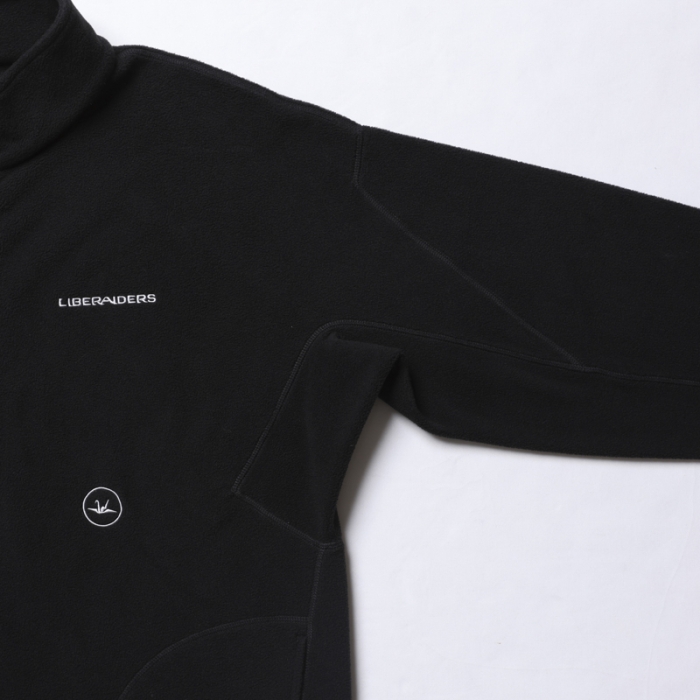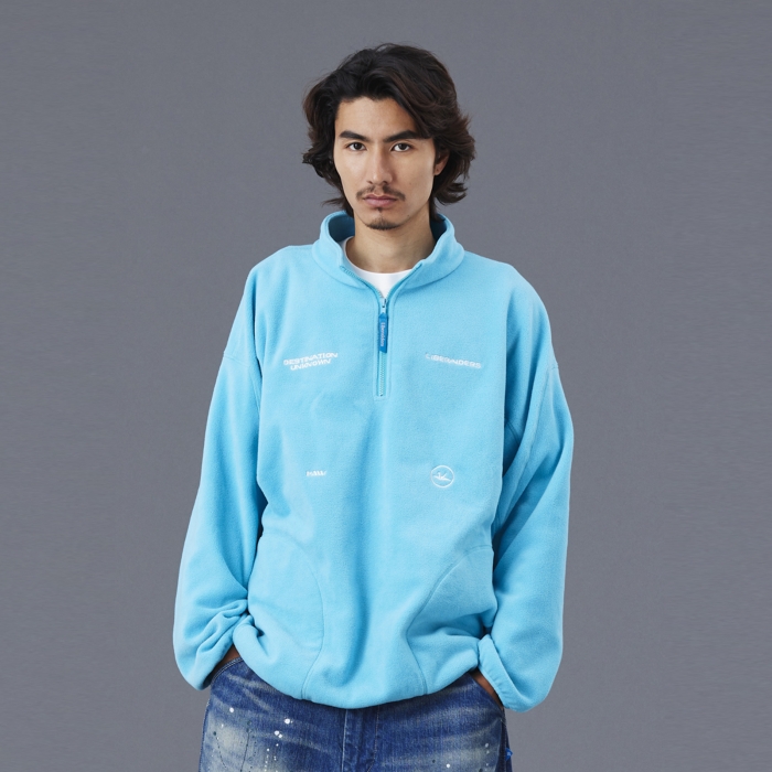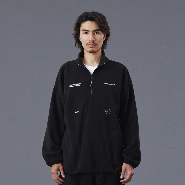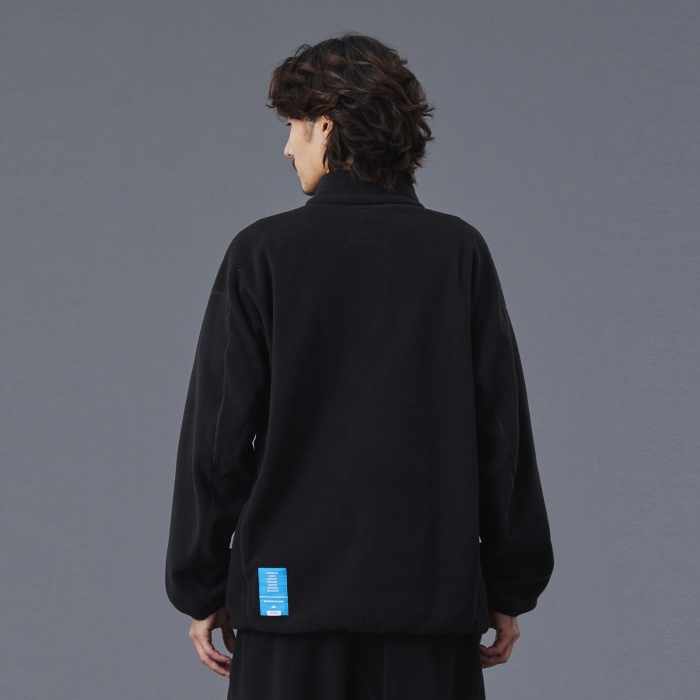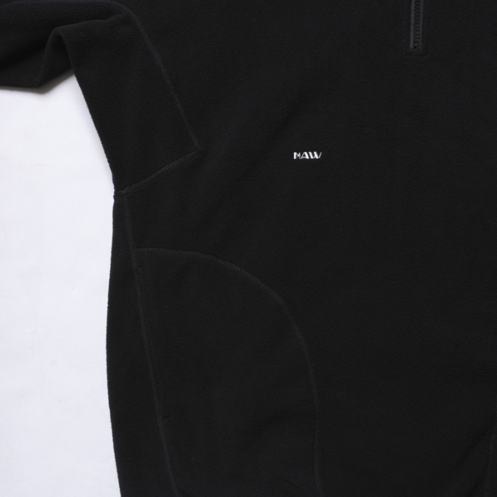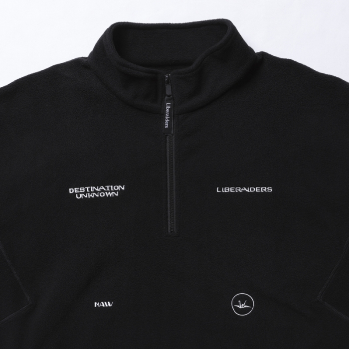 中肉で軽く保温性のあるフリースを用いたハーフジップ特殊な3Dパターンに切り替えられたボディのデザインと各所に散りばめられた刺繍がポイント。