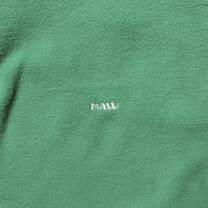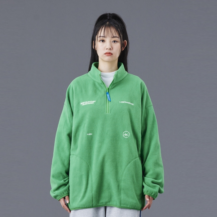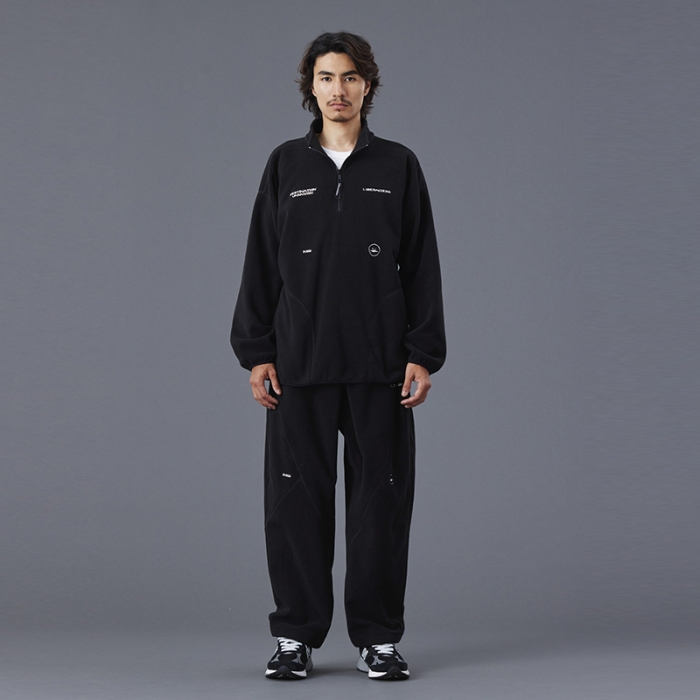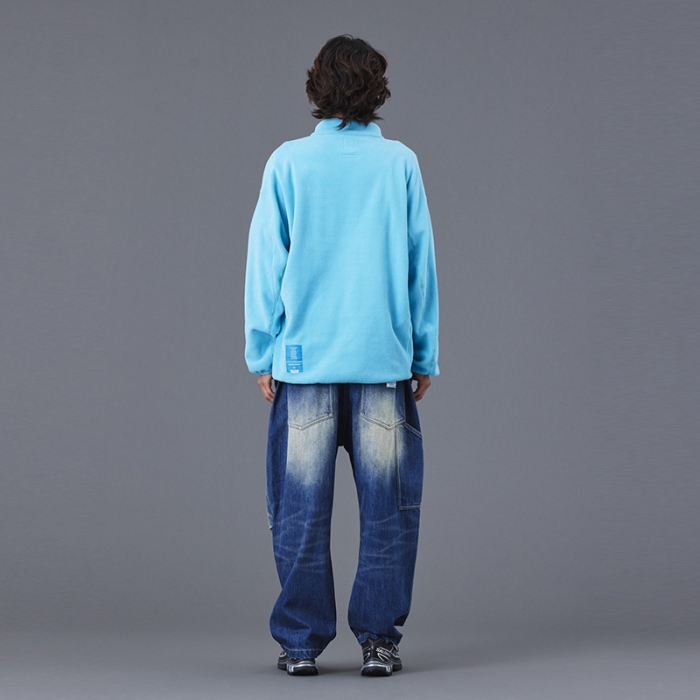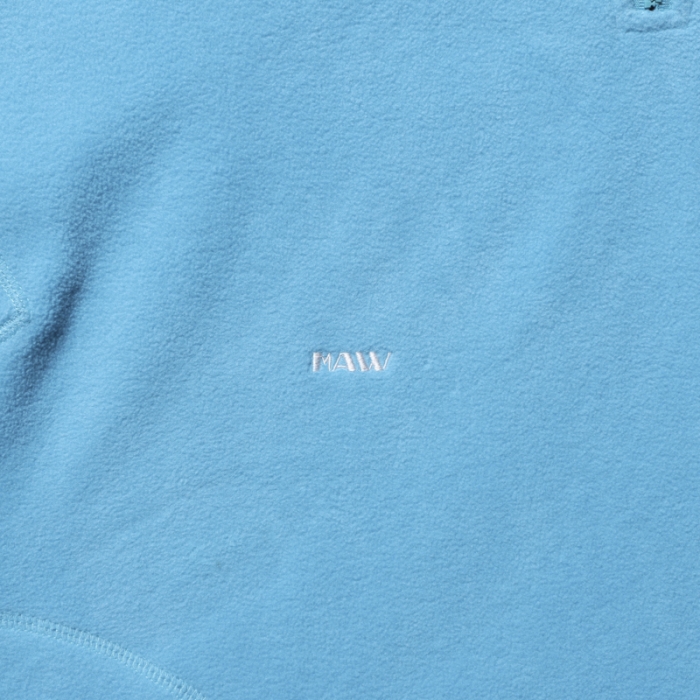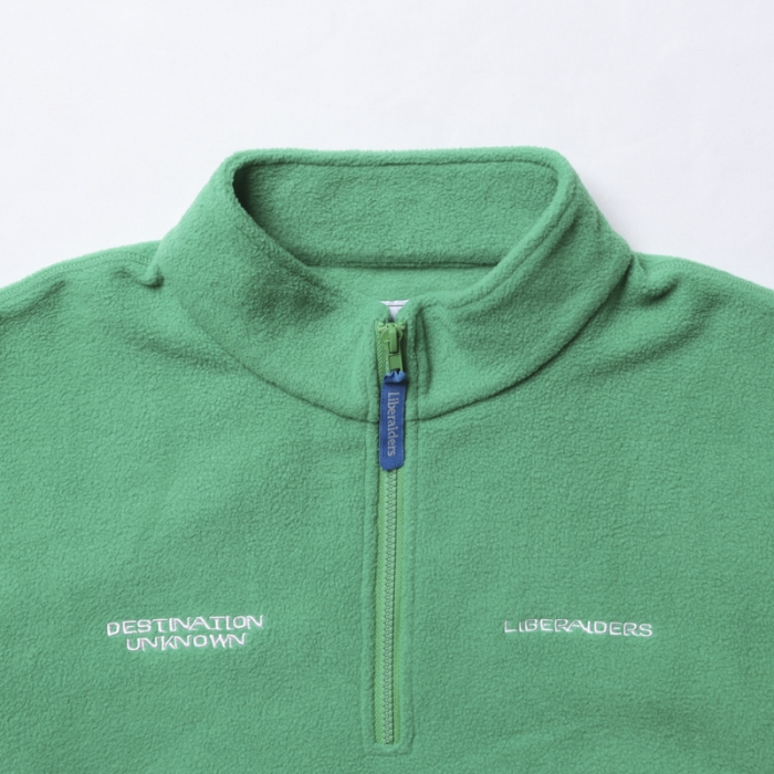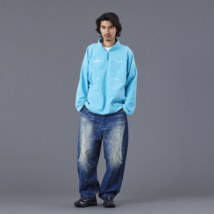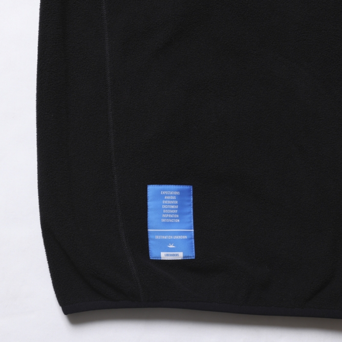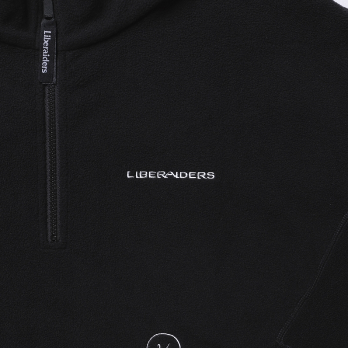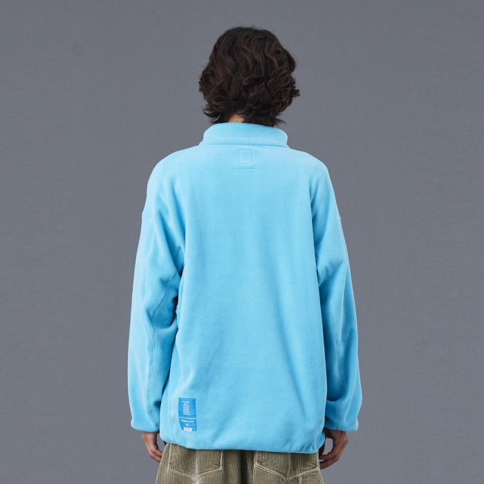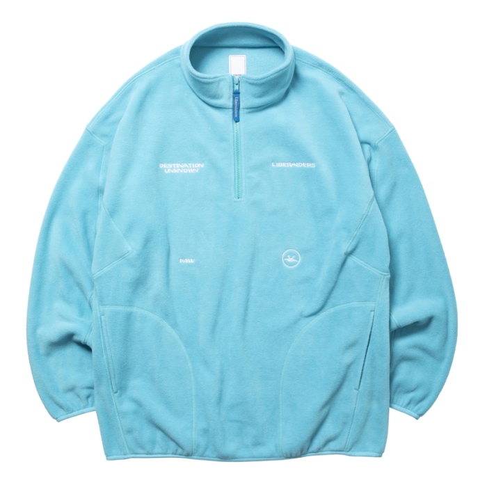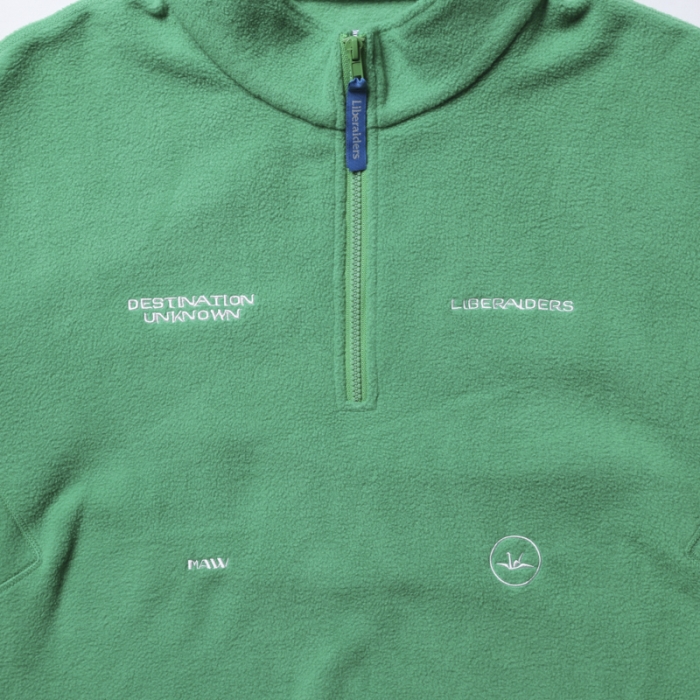 中肉で軽く保温性のあるフリースを用いたハーフジップ特殊な3Dパターンに切り替えられたボディのデザインと各所に散りばめられた刺繍がポイント。