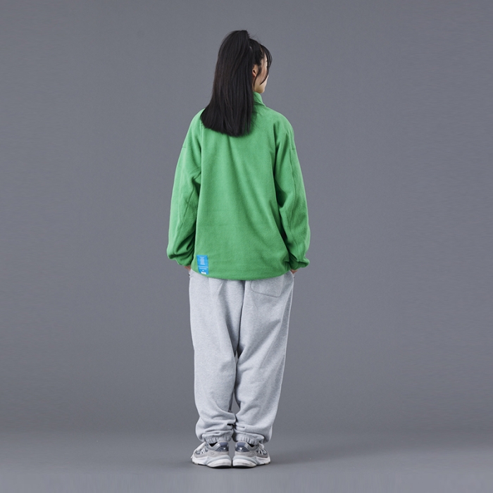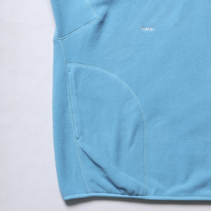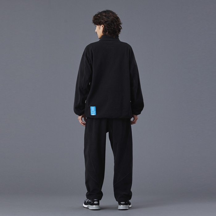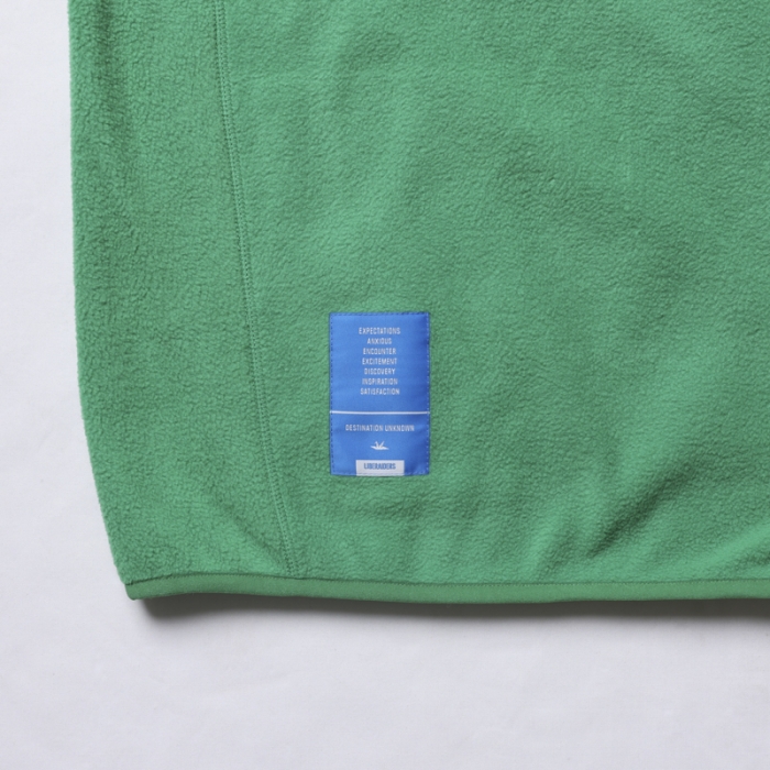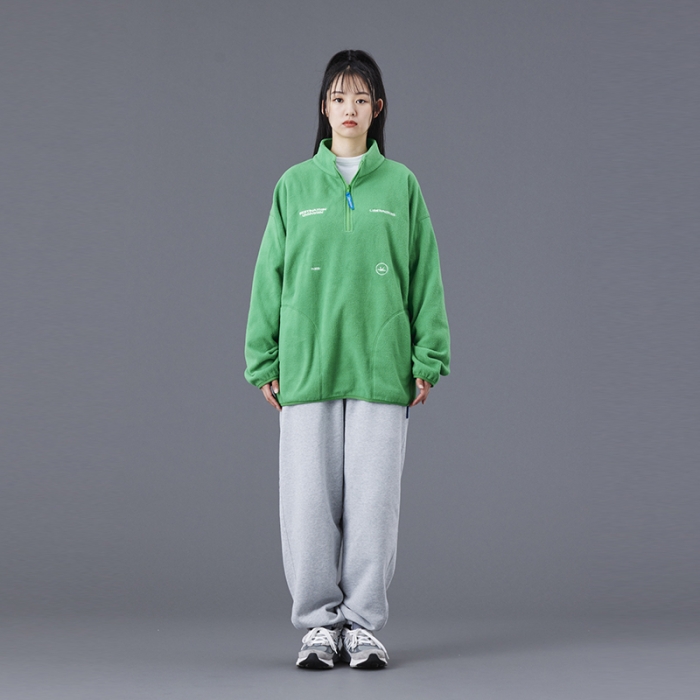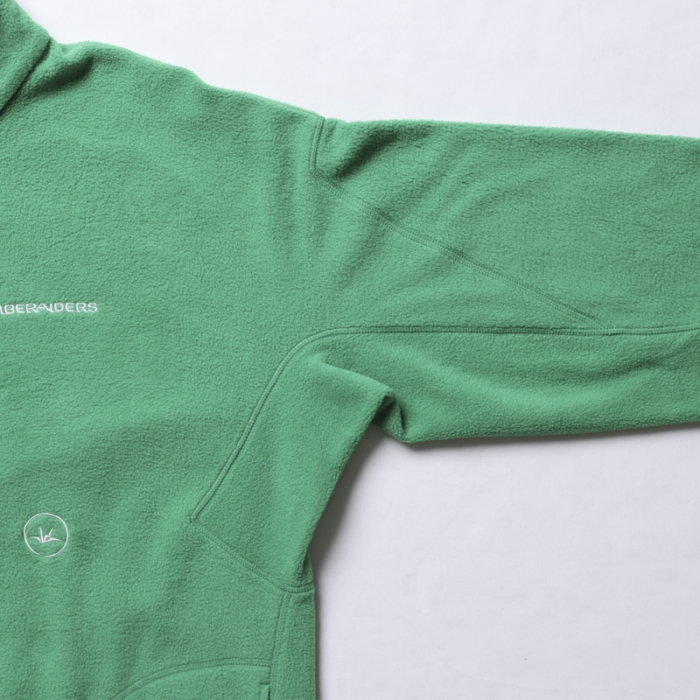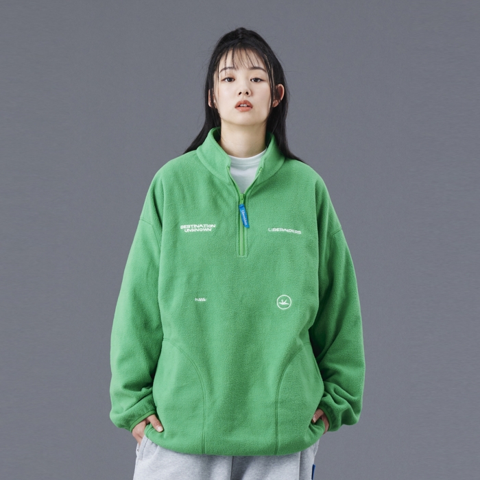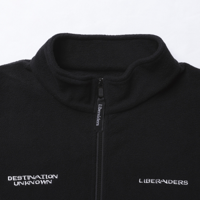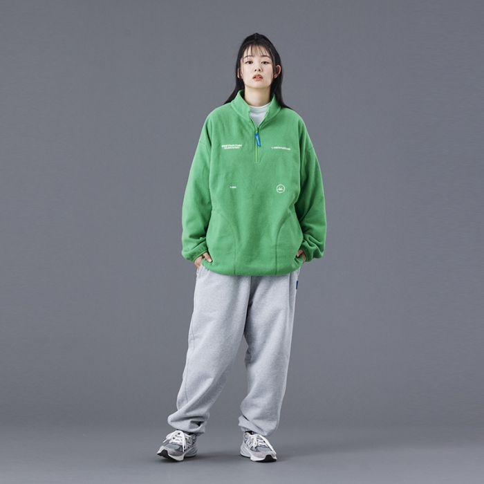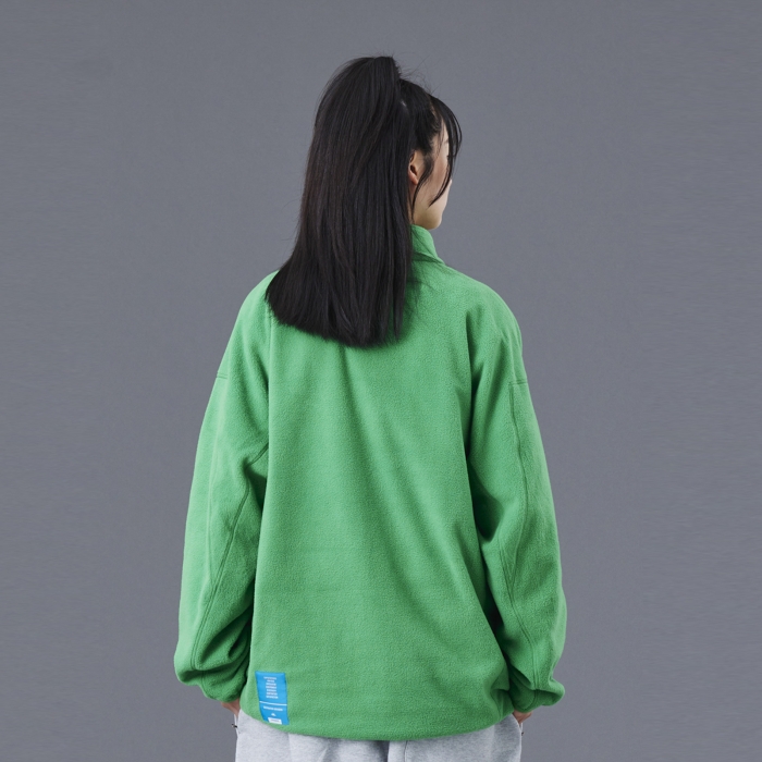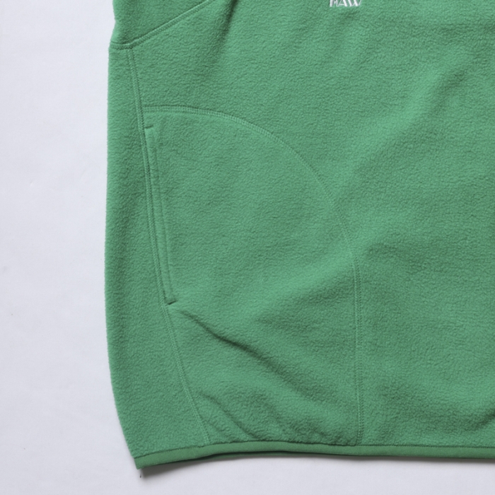 中肉で軽く保温性のあるフリースを用いたハーフジップ特殊な3Dパターンに切り替えられたボディのデザインと各所に散りばめられた刺繍がポイント。