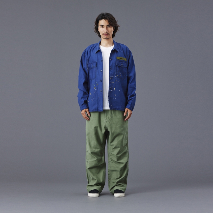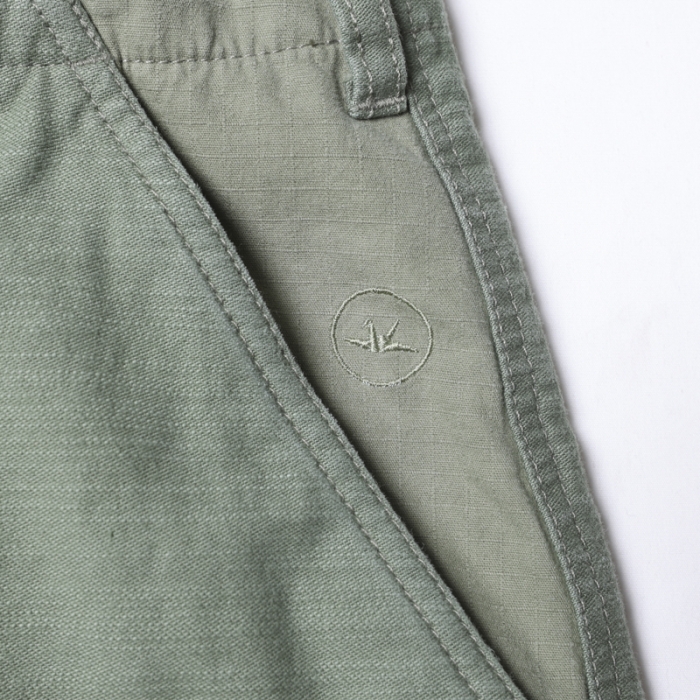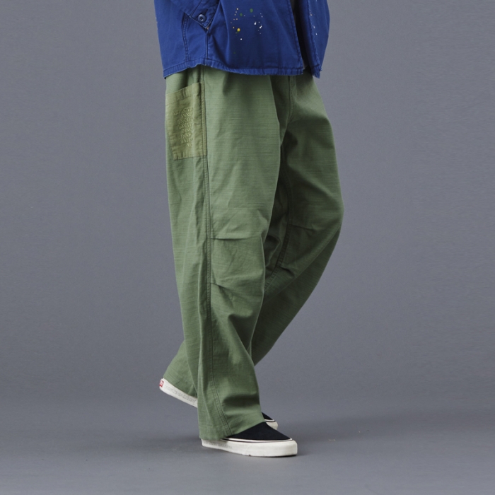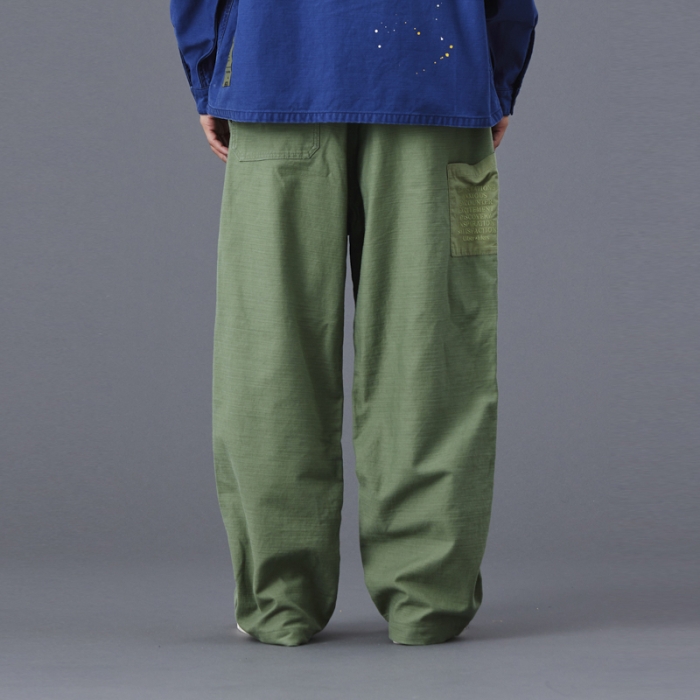 打ち込みのよいスラブバックサテンを使用したミリタリーパンツ。