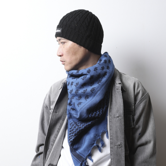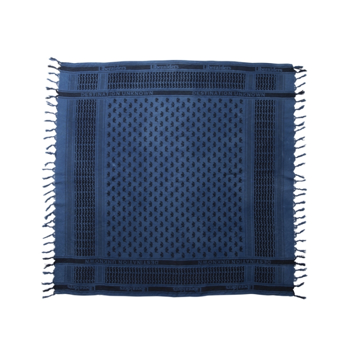 昨今、アウトドアや登山の携行品としても注目されているアフガンストールをよりボリューム感を出す為に大きく変更"(一般的なシュマグは1m四方。Liberaidersは1.2m四方)