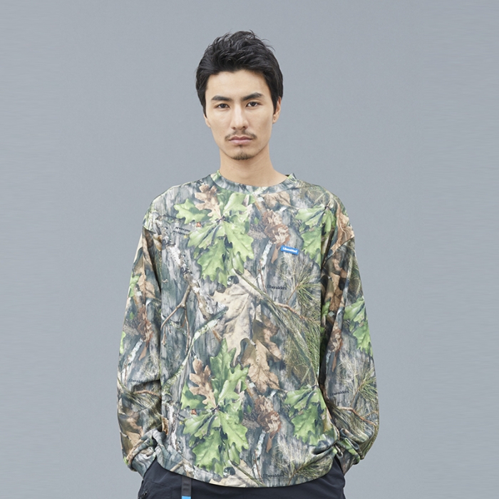 裏面がハニカム構造の吸水速乾生地にオリジナルのCAMO柄をプリントしたドライロンT。